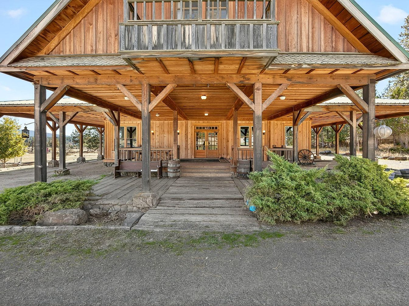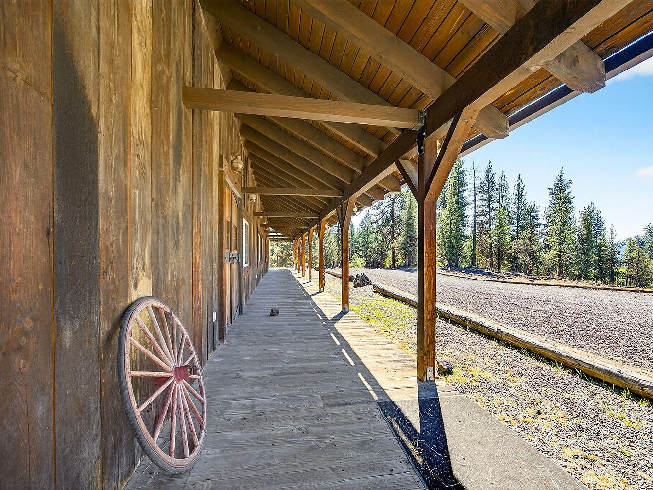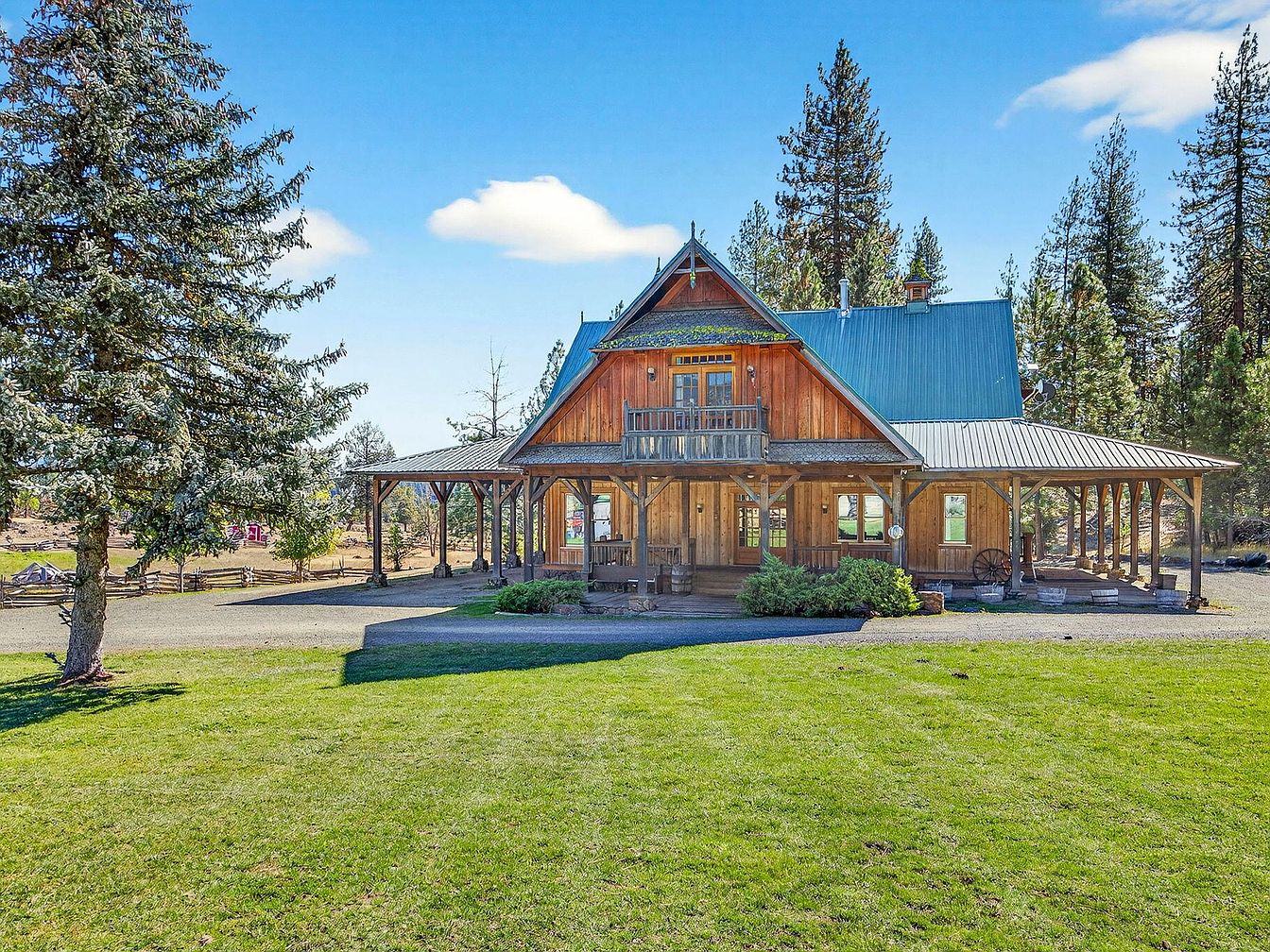Steeped in historical significance, New Frontier Ranch in Ashland, Oregon, offers 958 acres of pristine wilderness and Old West mystique, delivering status appeal with its unique blend of rustic charm and vast opportunity. The ranch includes a classic farmhouse and museum, a grand Great Hall, and three cabins, all reflecting traditional Western architectural style with exposed wood, large verandas, and pitched metal roofing. Perfect for a success-minded, future-oriented individual, its existing resort approvals, commercial kitchen, and infrastructure are ideal for retreats, events, or a destination resort. Listed at $10,775,000, this legacy property boasts extensive recreational amenities, irrigated meadows, and a preserved ghost town, making it a haven for both entrepreneurship and serenity.
