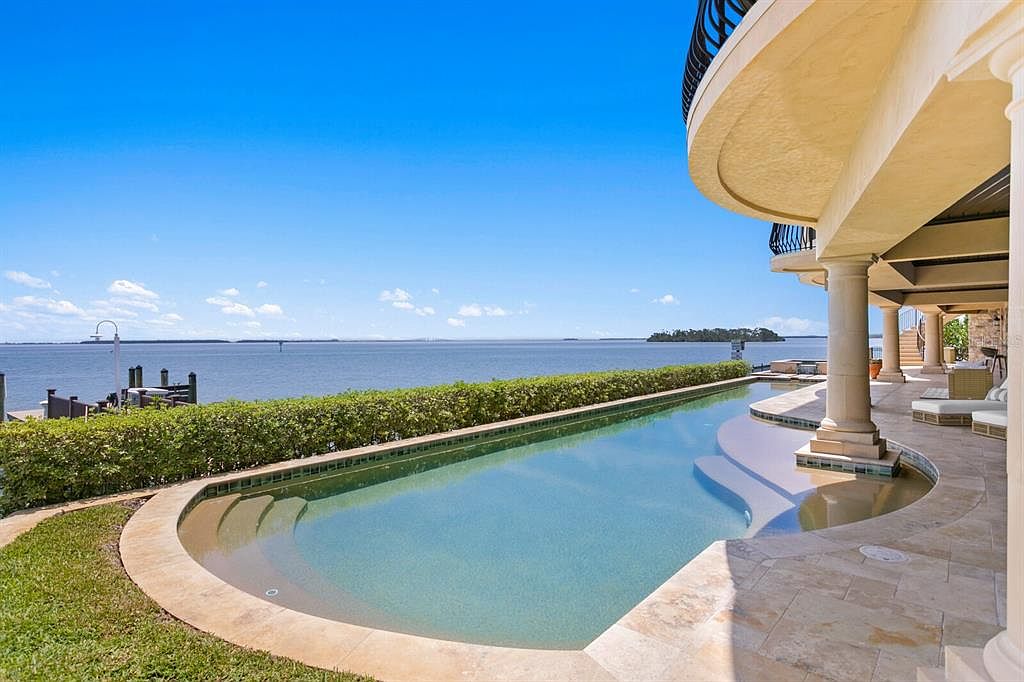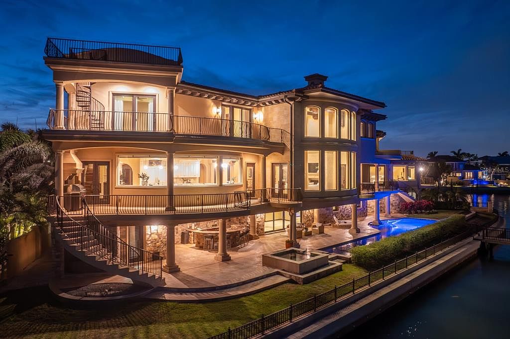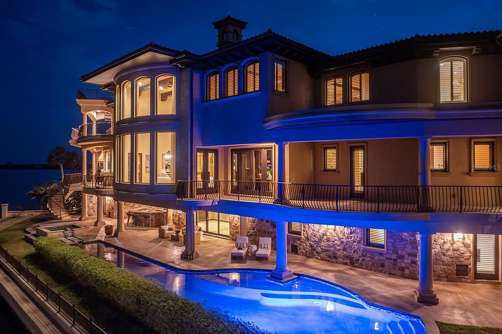 This extraordinary Mediterranean estate in Tierra Verde, known as the “Magic Mike House,” embodies success with its iconic historical significance, showcasing nearly 200 feet of waterfront. Perfect for future-oriented individuals, it offers sophisticated design and smart home technology. Built with meticulous craftsmanship, the home features expansive spaces like a grand great room and multiple guest suites, ensuring luxury and comfort. Recent renovations enhance its appeal, while amenities like dual elevators, smart home systems, and a full-service dock elevate its status. Priced at $9.8 million, the estate spans a generous plot with breathtaking bay views, providing a perfect blend of coastal living and modern elegance.