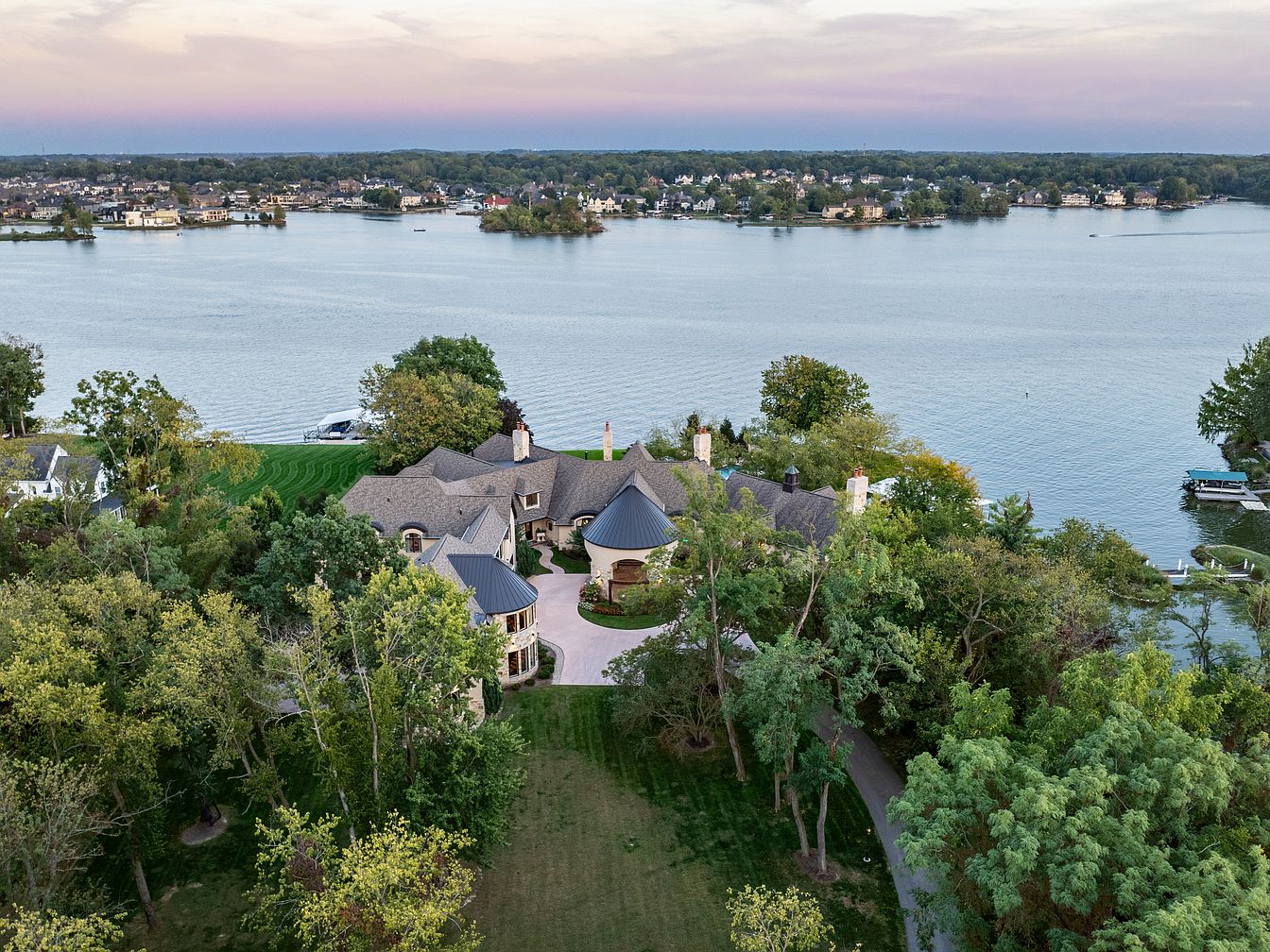 The Andretti Estate, a 21,000 sq ft gated waterfront mansion set on 5.23 acres with 570 feet of Geist Reservoir shoreline in Fishers, Indiana, embodies status and historical significance as a Midwestern luxury landmark. Perfect for the future-oriented achiever, its blend of exquisite craftsmanship and state-of-the-art automation, including a 3-level elevator and advanced security, ensures both prestige and seamless living. Architecturally inspired by grand European influences, the estate has been recently updated to offer expansive living and entertaining spaces, including 9 bedrooms, 12 bathrooms, dual kitchens, lavish outdoor amenities, and a 50’ pool overlooking the water. Listed at $11,950,000, this unparalleled estate boasts resort-style comfort, manicured grounds, and 5,500 sq ft of climate-controlled garage space, catering to all aspirations of luxury and success.