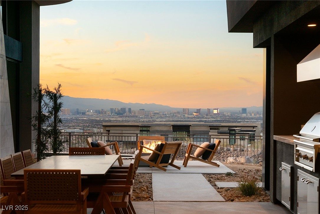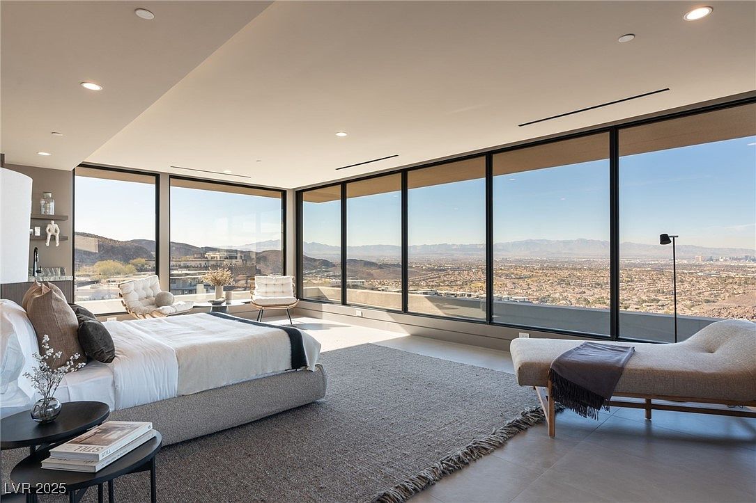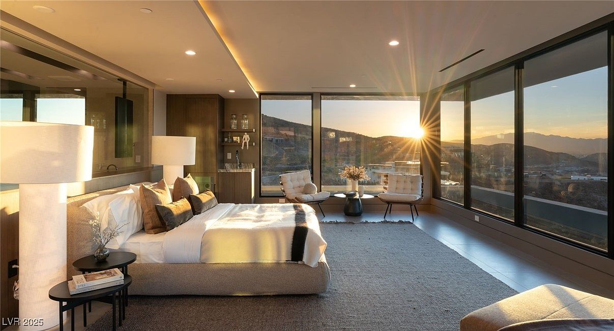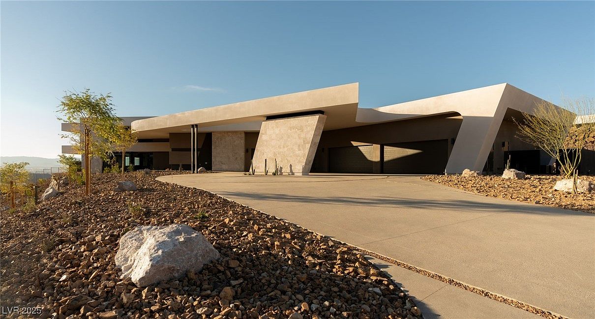 Completed in February 2025, this 7,617-square-foot Blue Heron estate in prestigious Ascaya, Henderson, NV, epitomizes modern desert luxury and status. Priced at $11,499,999 and set on nearly an acre, its striking mid-century architectural lines with bold stone walls and overhangs deliver both style and substance, while panoramic views of the Las Vegas Strip and McCullough Mountains elevate its status appeal. The seamless fusion of indoor-outdoor living, automated pocket doors, and expansive entertainment spaces, including a chef-grade kitchen, media room, and resort-caliber pool, make it perfect for success-driven individuals. Five bedrooms (including dual suites), a six-car garage, and exclusive access to a world-class clubhouse underscore this home’s perfect harmony of future-forward design and timeless prestige.