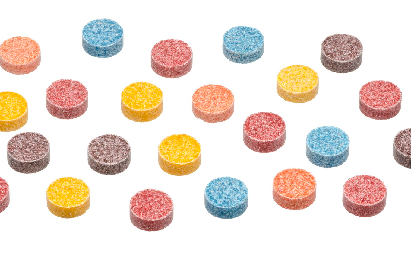 Bottle Caps translate soda pop into tablets that dissolve with a hush of fizz. Cola, root beer, orange, grape, and cherry arrive with a quick sparkle that tastes like a matinee and a striped straw. Halloween and road trips suit them, when small rolls pass between seats and swaps become part of the fun. What returns now is flavor clarity and gentle tartness, each cap true to its label, small and direct, a pocket toast to movie nights and drive in speakers.
