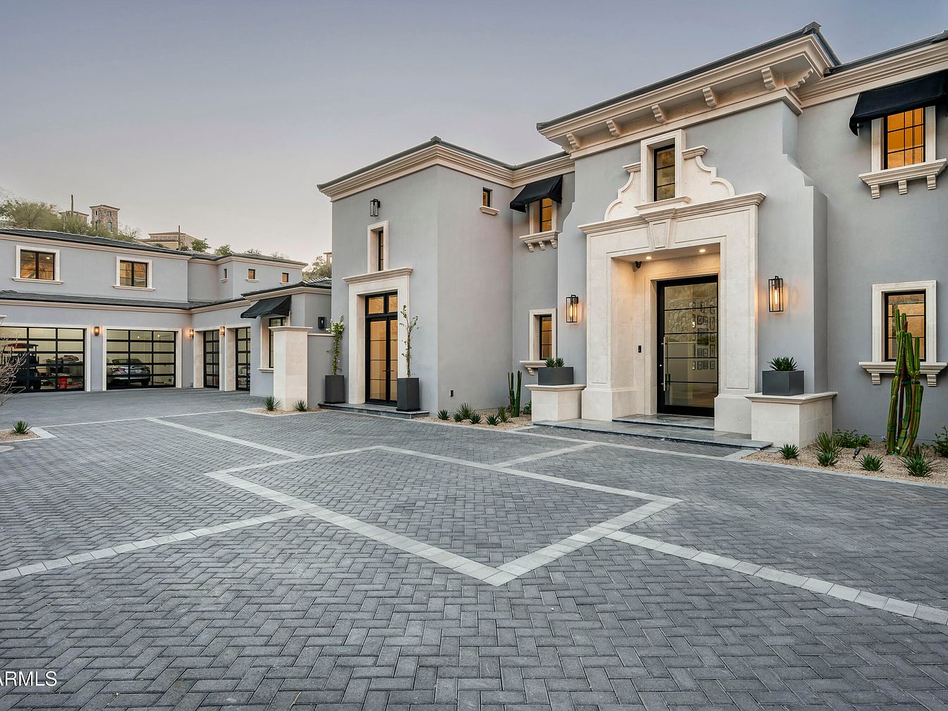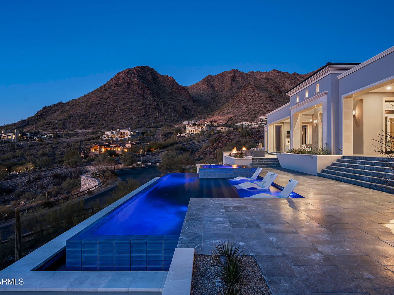 This luxurious Modern Formal Mediterranean estate in the prestigious Summit at Silverleaf, Scottsdale, Arizona, is a pinnacle of success and sophistication. Recently completed, it boasts exceptional features such as soaring 21-foot ceilings and a high-tech Control4 smart home system. Designed with sustainability in mind, it includes solar panels and high-efficiency windows. The property, listed at $11,995,000, offers stunning views of the McDowell Mountains and includes a resort-style infinity pool and putting green. With a generous square footage and a 4-car garage, this home seamlessly blends modern luxury with the natural desert landscape, making it perfect for discerning individuals seeking both comfort and status.