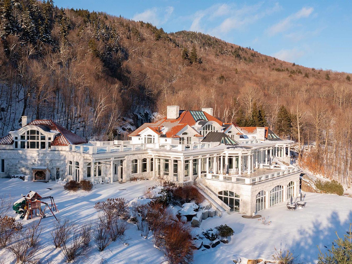 Above the Clouds, a design marvel in Stowe, Vermont, is a prestigious estate that combines luxury and natural beauty on 15 acres. Built with exquisite Vermont Danby marble, the home features a stunning architectural style characterized by expansive floor-to-ceiling windows, perfect for a future-oriented individual. Completed recently, the estate showcases a grand foyer leading to opulent entertainment areas and private suites, including a magnificent primary suite and guest accommodations, all with breathtaking views. Recent renovations enhance its grandeur, with a listing price of $14 million, covering a substantial plot area. The estate’s indoor pool and spa, combined with outdoor terraces, create an idyllic environment for success and social gatherings, solidifying its status as a masterpiece.