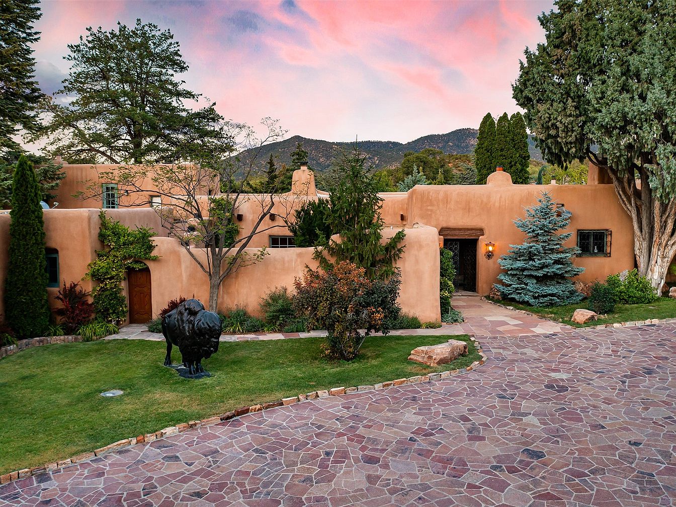 Nestled in the historic Camino del Monte Sol, this exquisite 1918 Pueblo-style Spanish Colonial compound boasts a rich history, having been a creative hub for Los Cinco Pintores and Taos School Artists. With 2.21 acres of meticulously landscaped grounds, the estate features stunning original architecture, including coved ceilings and restored doors. The tranquil ambiance of lush gardens and scenic views of the Sangre de Cristo Mountains makes it ideal for a future-oriented individual seeking creativity and solace. Recent renovations enhance its allure, while its zoning allows for exceptional development potential. Priced at $15,500,000, this unique property reflects both status and opportunity for the discerning buyer.