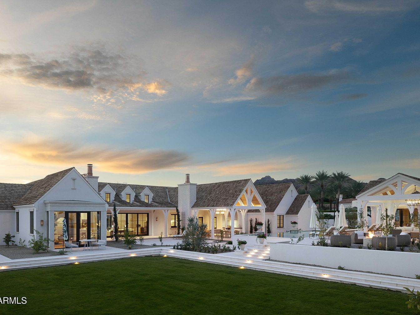 Nestled in the prestigious Paradise Valley, this remarkable estate, historically significant for its blend of transitional European design and art deco elements, embodies the essence of success. Completed in recent years by notable artisans, the home features textured white brick and natural limestone, creating an elegant façade. The expansive interiors, including a gourmet kitchen and luxurious primary suite, coupled with serene outdoor spaces and a detached guest house, cultivate a perfect atmosphere for the future-oriented individual. Priced at $14.5 million, this 8,450 sq. ft. residence, surrounded by stunning mountain views, soared lavishly with a dedicated sport court and recent renovations, reflects a harmonious mix of comfort and sophistication.