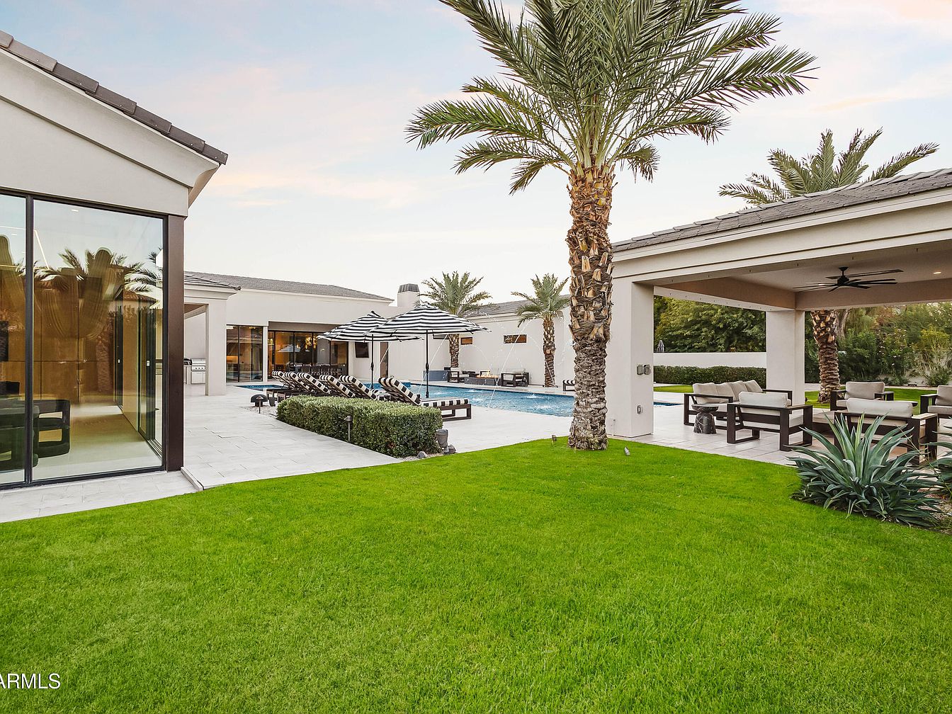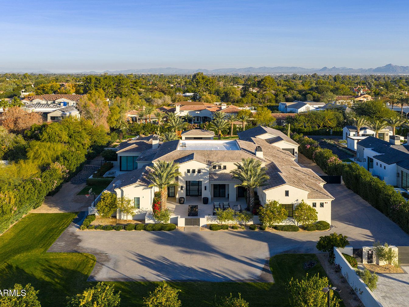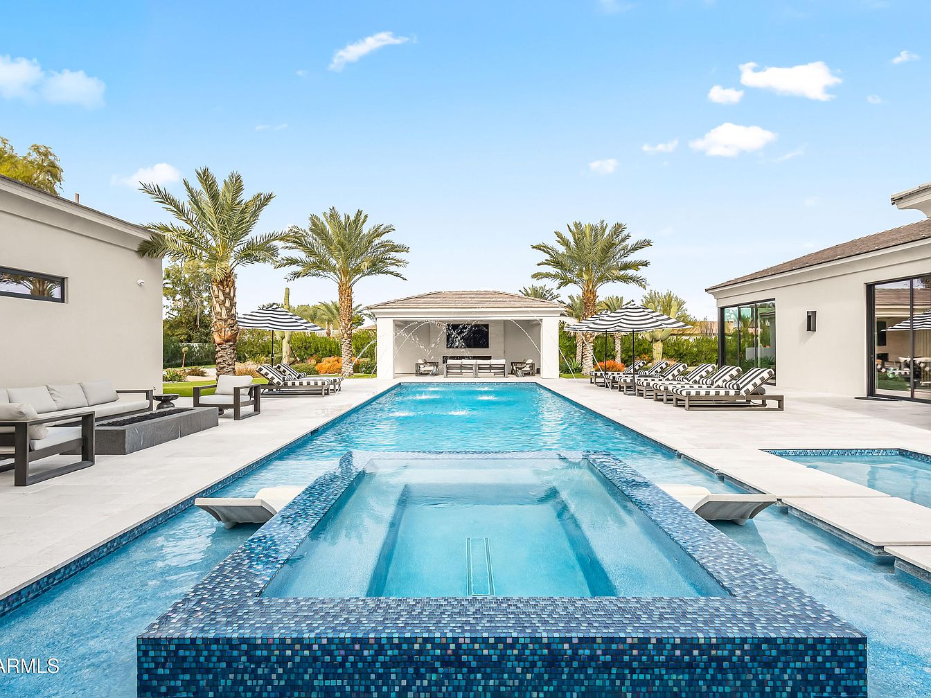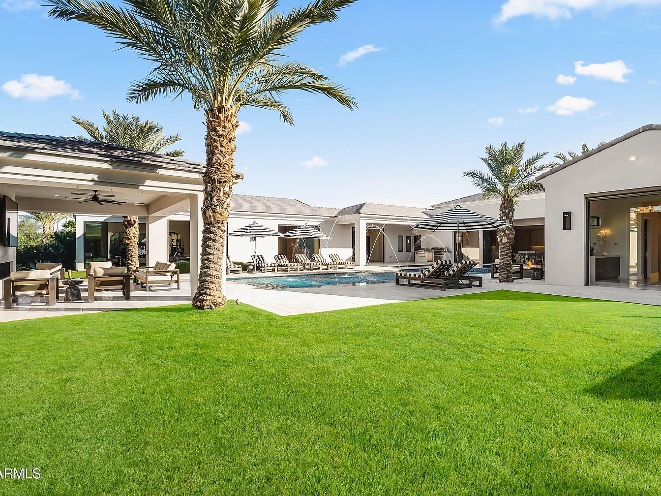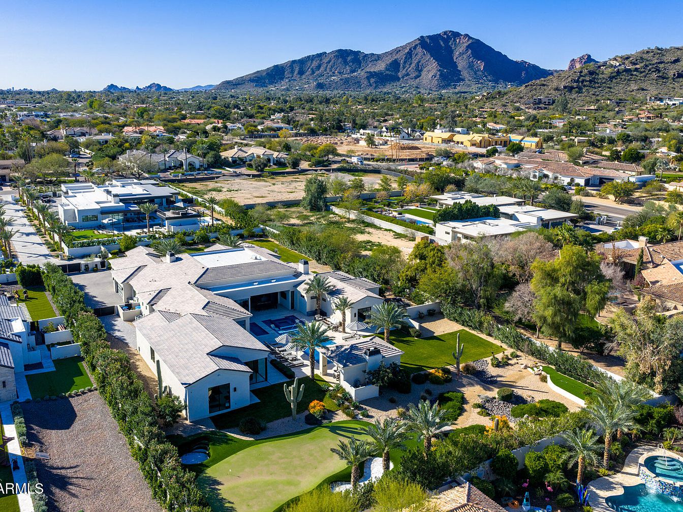 Nestled in prestigious Paradise Valley, this $15M estate epitomizes resort-style living with panoramic views of Mummy Mountain. The modern architecture features elegant wood-paneled ceilings, open-concept living, and a spacious chef’s kitchen with high-end appliances. Built for a future-oriented lifestyle, it includes smart home technology and a versatile 2,000 sqft bonus space. Recent renovations enhance functionality and style, while amenities like a heated saltwater pool, outdoor kitchen, and spa ensure year-round entertainment. The property spans a lush landscaped area, ideal for discerning individuals who desire luxury and comfort, and is conveniently located near fine dining and world-class golf. The design and setting collectively provide a perfect backdrop for success-driven living.