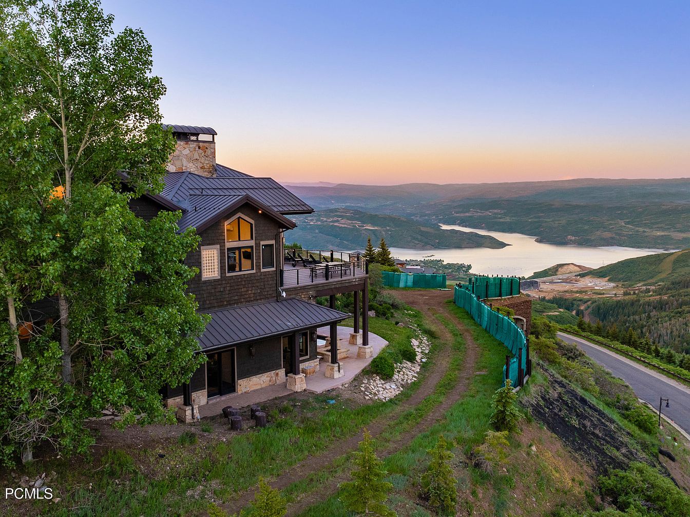 Nestled atop a scenic mountain, this striking home blends rustic charm with modern elegance. The exterior features rich wooden siding accented by stone, creating warmth amidst the natural surroundings. A sleek, dark metal roof enhances the contemporary aesthetic while ensuring durability against the elements. Spacious outdoor decks provide breathtaking views of the lake and valley below, ideal for family gatherings. Thoughtful landscaping with native greenery fosters a sense of harmony with nature. Large windows invite natural light and showcase breathtaking vistas, while the airy design promotes a sense of openness, perfect for enjoying tranquil sunsets together.