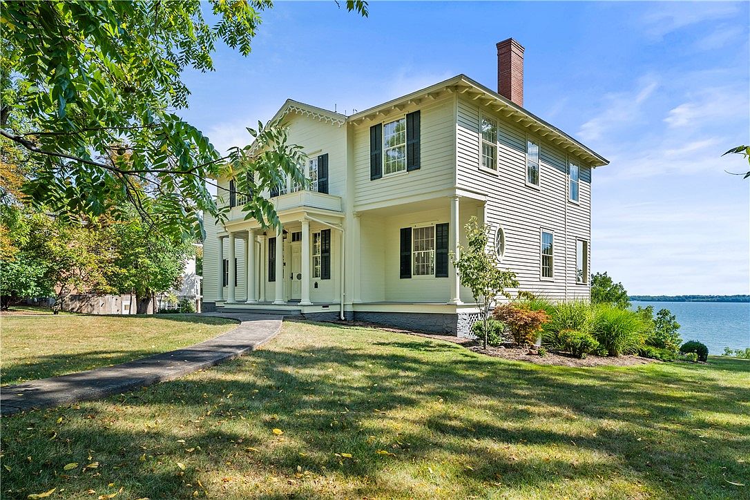 The “CUTBUSH” house in Geneva, NY, built circa 1830 by Edward Cutbush, MD, exudes timeless prestige and historic status with its commanding perch on Seneca Lake’s west bank in the sought-after Historic South neighborhood. Designed in a classic style that embraces symmetry and elegant grand woodwork, this residence offers 186 feet of private lake frontage and panoramic water views from every room. Meticulously updated with a modern quartz kitchen, contemporary baths, and a versatile 1,074 sq. ft. finished lower level, ideal for remote work or multi-generational living, it enables a success-driven, future-oriented lifestyle. Listed at $1,474,900, with walkable access to downtown and Hobart William Smith Colleges, this distinctive home blends heritage, luxury, and ambition in one spectacular package.