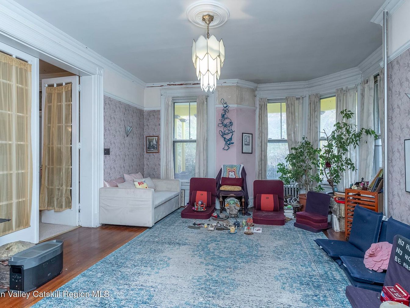 This stately Queen Anne Victorian, built in 1860 and located in vibrant downtown Kingston, NY, epitomizes status and future-oriented living with its rich historical significance and architectural grandeur. Set on a rare oversized 1.63-acre semi-private lot just steps from the renowned Rondout district, the 2,663 sq ft home features original hardwoods, ornate millwork, stained glass, and a finished 1,269 sq ft attic, ideal for a studio, office, or creative retreat. The sunlit, high-ceilinged rooms and period details offer a distinguished backdrop for success-minded individuals, while proximity to Kingston’s thriving cultural scene adds to its appeal. Recently listed for $629,900, this residence is a true luxury find, blending historical elegance and unlimited modern potential.