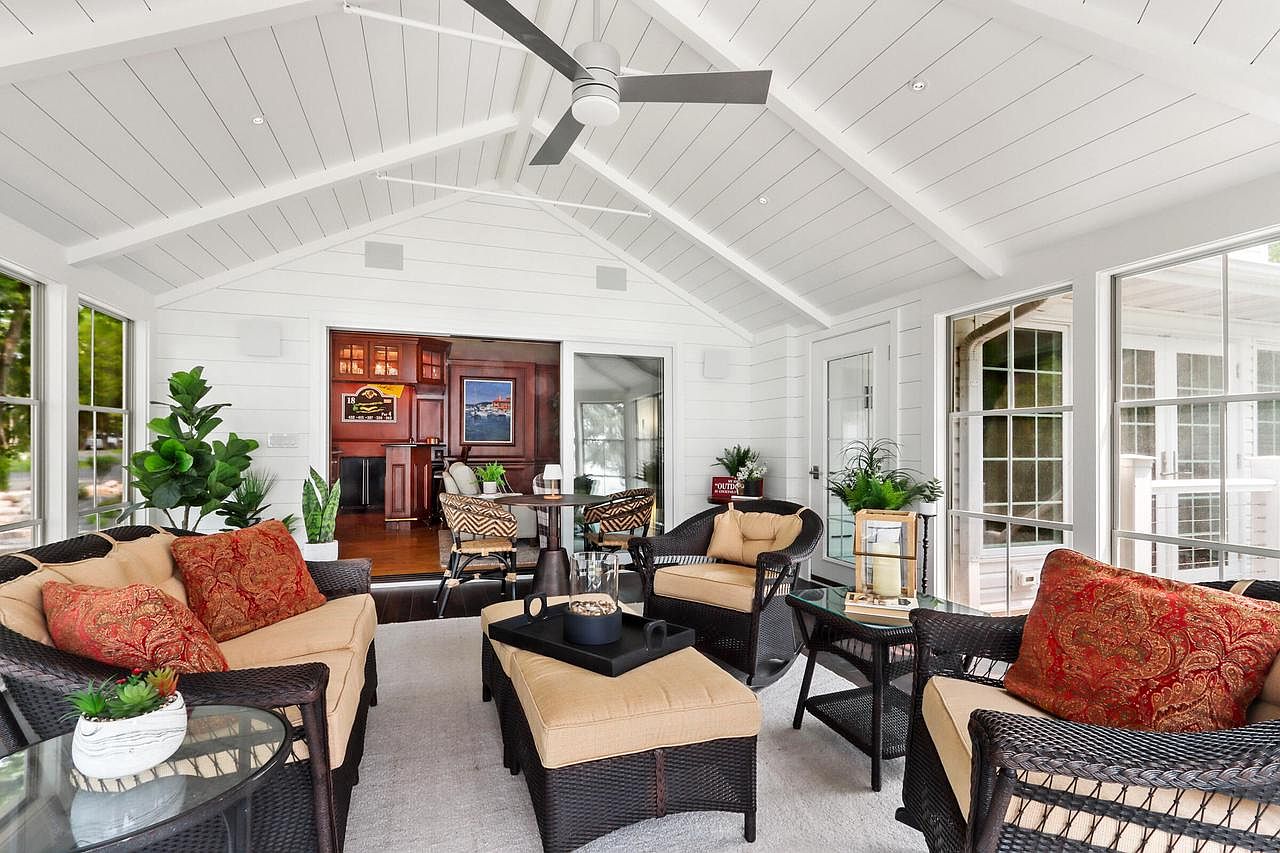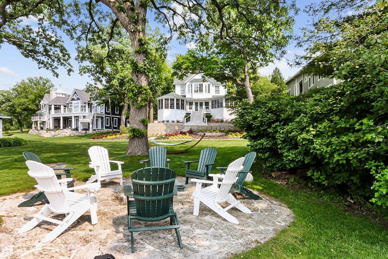 This stunning, remodeled Delavan Lake home, priced at $4,250,000, exudes historical status appeal with its classic yet contemporary architecture, characterized by expansive windows, crisp white siding, and refined stonework. Perfect for the success- and future-oriented individual, this retreat boasts 157 feet of level lake frontage, spectacular sunsets, multiple living and entertaining spaces, and high-end amenities including a gourmet kitchen with Cambria countertops and Wolf/Bosch appliances. The property features a six-bedroom main house plus a separate lakefront cottage, two boat slips, a swim platform, new mechanicals and roof, and a 3-car garage. Ideal for visionary living or grand entertaining, its South Shore Delavan, WI location promises both privacy and access to vibrant lake life.