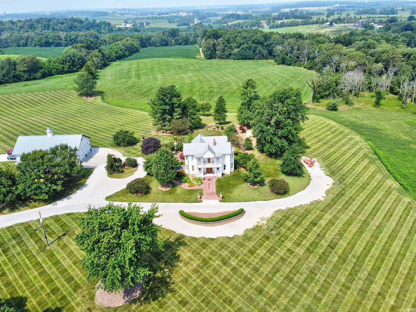 This historic farmhouse, originally built in 1906 and meticulously renovated from 1994 to 1997, embodies the essence of success and modern living with its timeless Colonial architecture and expansive 32-acre setting in Ferdinand, IN. The exterior features durable California Redwood and a standing seam metal roof, balancing old-world charm with modern durability. Nestled amidst serene rolling hills, the property boasts breathtaking views and lush landscaping, perfect for a future-oriented individual seeking tranquility close to urban amenities. With a price of $1,150,000, it offers 3-4 bedrooms, expansive outdoor spaces, and a functional Morton building. The beautiful renovations not only enhance aesthetics but also ensure a comfortable, luxurious lifestyle.