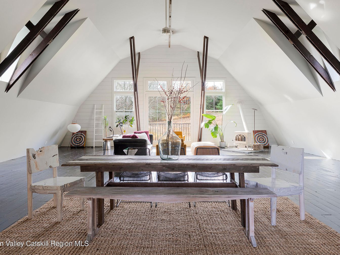 This magnificent Accord, NY residence blends the historical allure of a 1920s dairy barn with contemporary luxury, making it a true status symbol for success and forward-thinking living. Meticulously restored and expanded in 2022, the ivy-clad barn sits on over six acres of scenic land, surrounded by meadows and forests for complete serenity. Architectural details include original beams, soaring ceilings, and modern French doors, uniting rustic craftsmanship with modern amenities such as a new primary suite, updated electrical and plumbing, and spa-inspired touches. Listed at $2,750,000, this home offers privacy, grand entertaining spaces, and a peaceful retreat, positioning it perfectly for those who value legacy, innovation, and the idyllic Hudson Valley lifestyle. Square footage details are not specified.