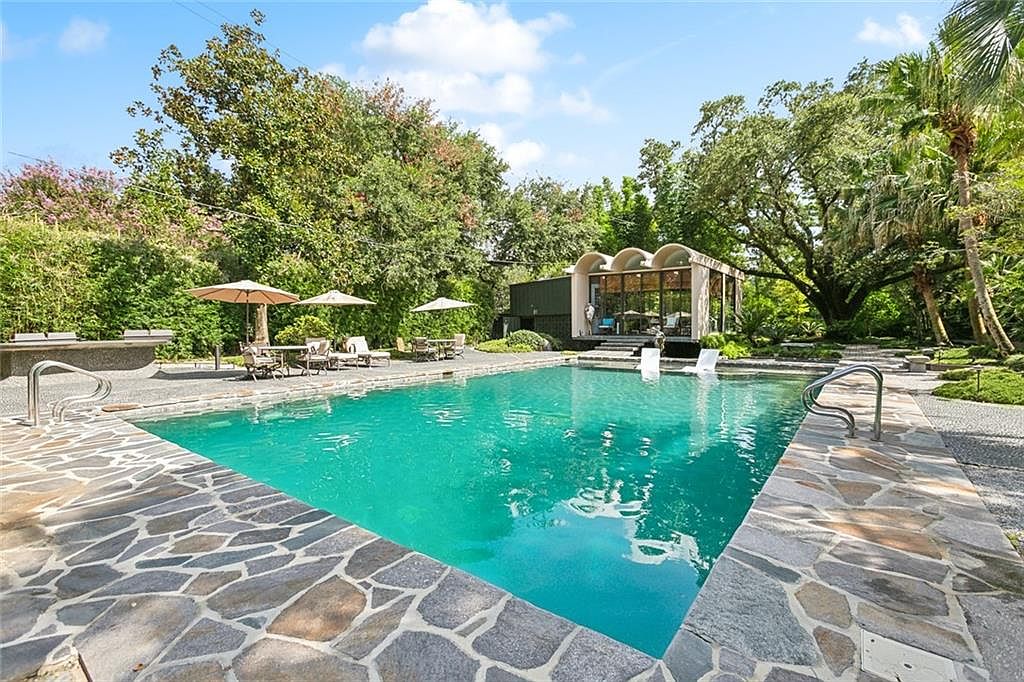 This breathtaking New Orleans estate, listed at $4,875,000, stands as a paragon of luxury and sophistication, perfect for the success-driven, future-oriented individual. Designed by renowned architect Arthur Davis, its enduring appeal is upheld by solid concrete walls and columns, blending modern glamour with timeless strength. Sprawling over expansive grounds with a lavish saltwater pool, floating cabana, and Japanese gardens by Robin Tanner, the home’s architectural style fuses classic grandeur with contemporary flair, showcasing impressive glass walls and majestic colonnades. Inside, opulent finishes, a professional-grade kitchen, luxurious suites, and entertainment spaces embody prosperity and innovation. Besides its potential for substantial film-production revenue, this secluded sanctuary delivers prestige, tranquility, and investment promise in one extraordinary package.