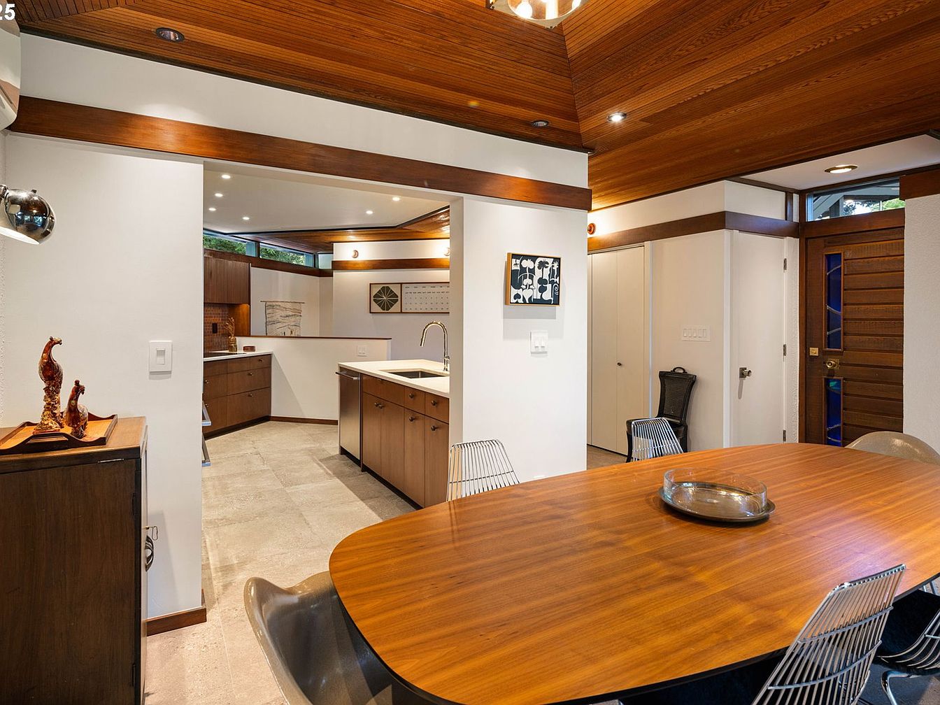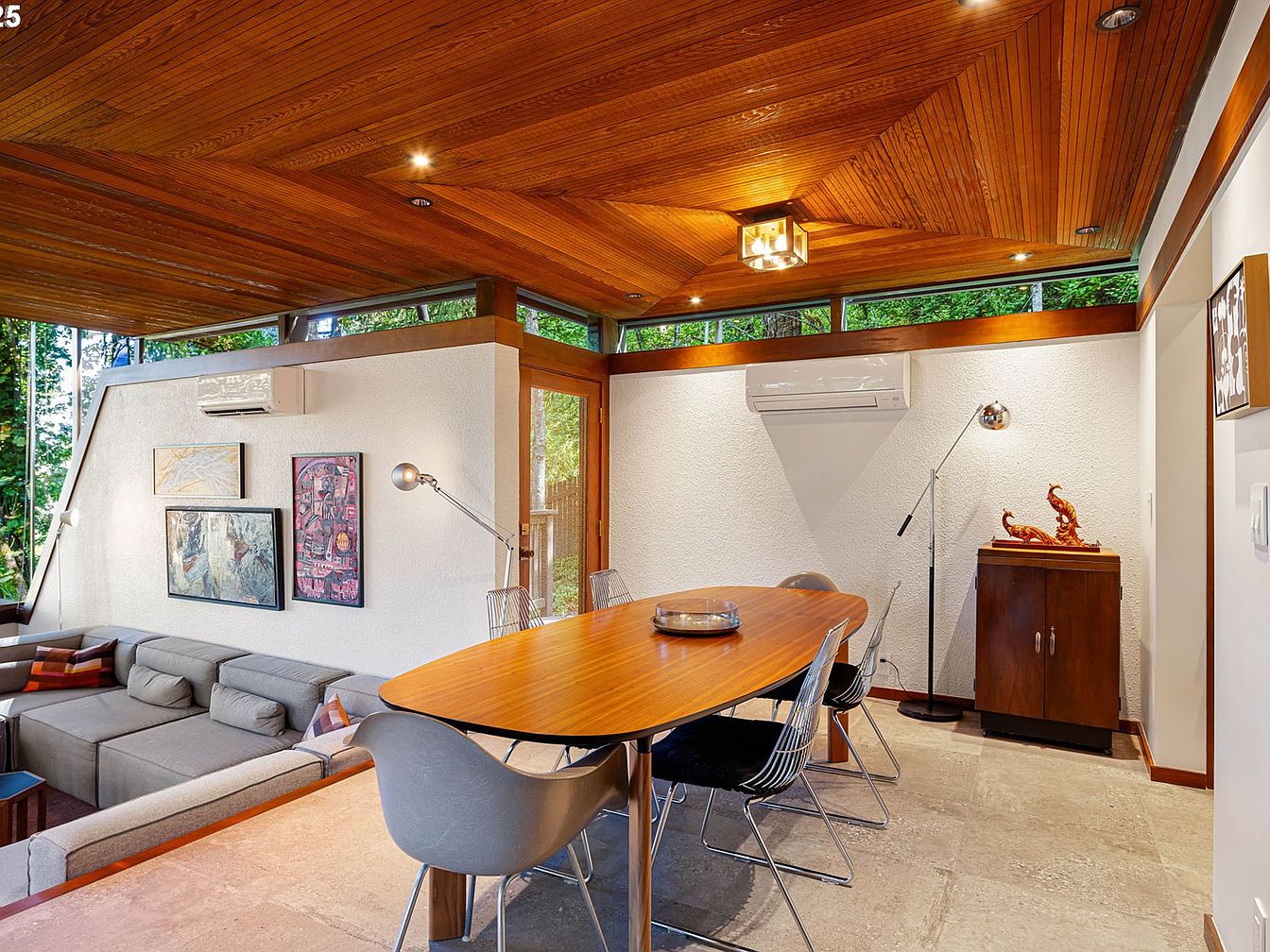 This iconic mid-century modern home, designed in 1965 by renowned architect Otto Poticha, epitomizes status and architectural significance in Eugene, OR, near the University of Oregon and scenic Hendricks Park. Perfect for the success- and future-oriented buyer, its treehouse-inspired pavilions, floor-to-ceiling windows, and preserved solid cedar ceilings inspire creativity and serenity. Thoughtfully reimagined to 21st-century standards, every feature, from roofing to fixtures, has been meticulously renovated, blending historical integrity with contemporary comfort. With dramatic sunset views, a primary suite on the main level, private entertaining decks, and lush natural surroundings, this $1,095,000 home offers a unique opportunity for those passionate about design and distinction. Exact square footage and plot size are not specified, but the layout emphasizes livability and connection to nature.