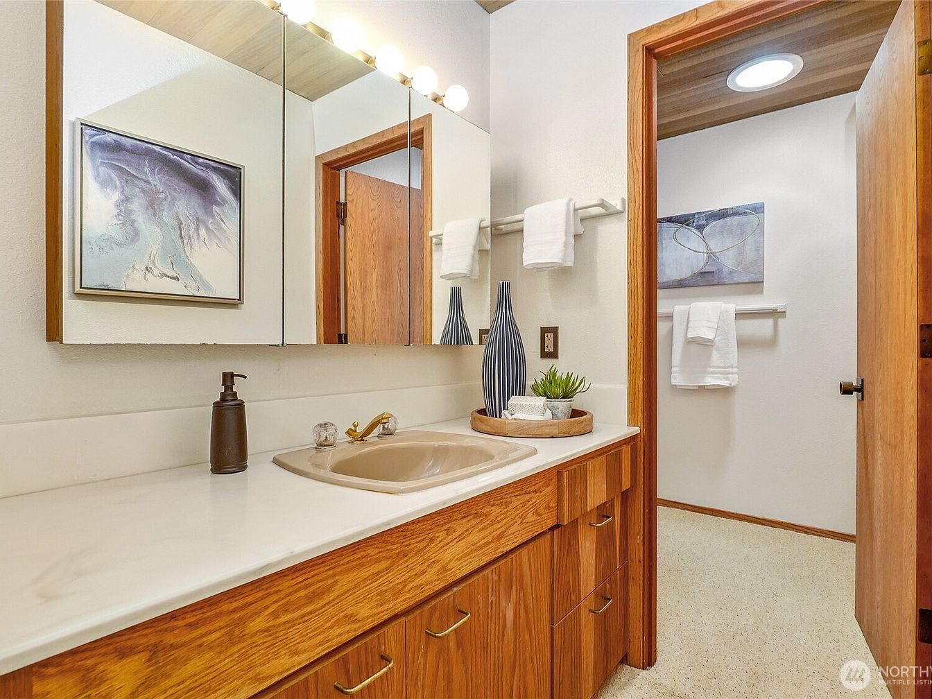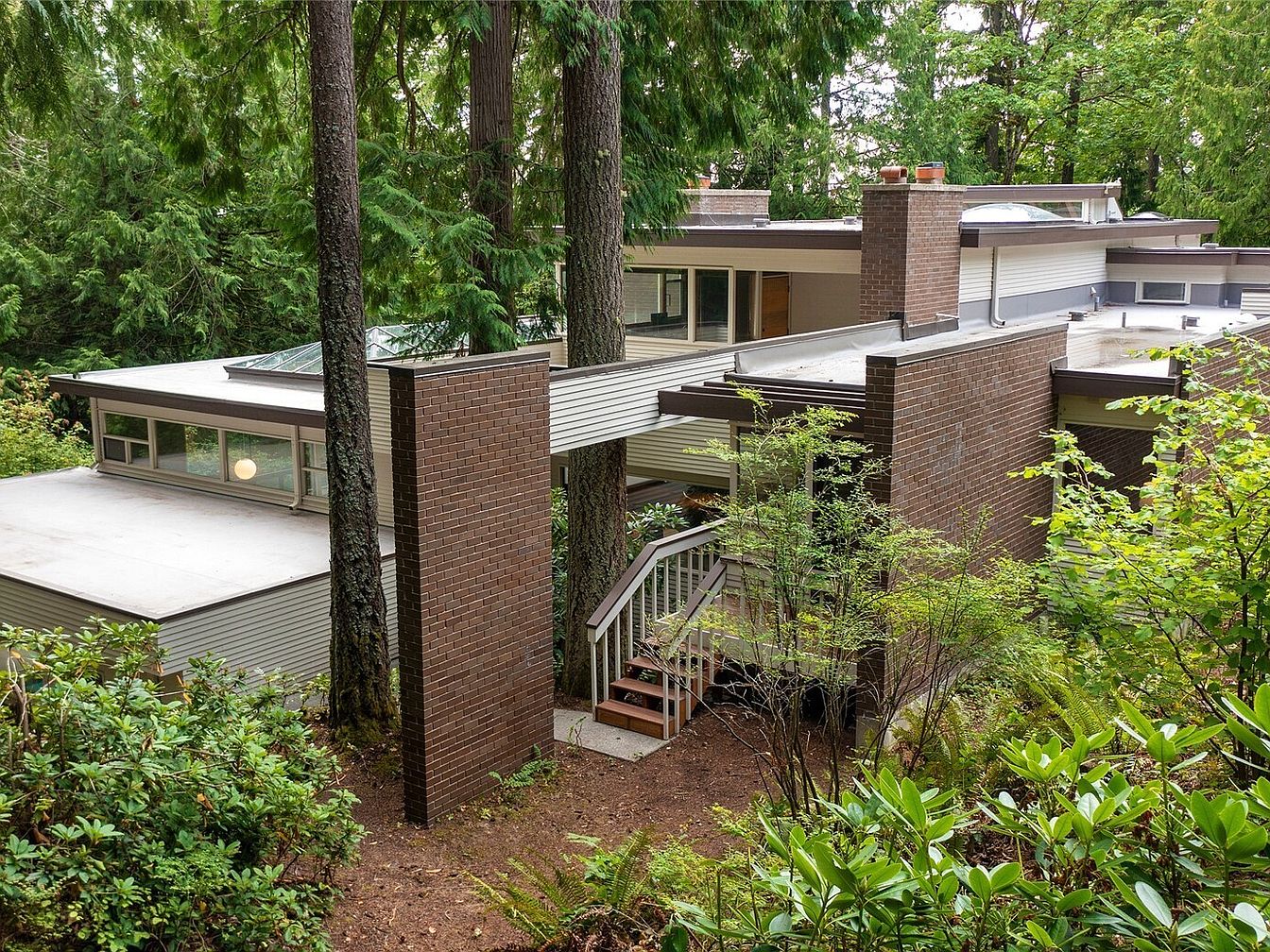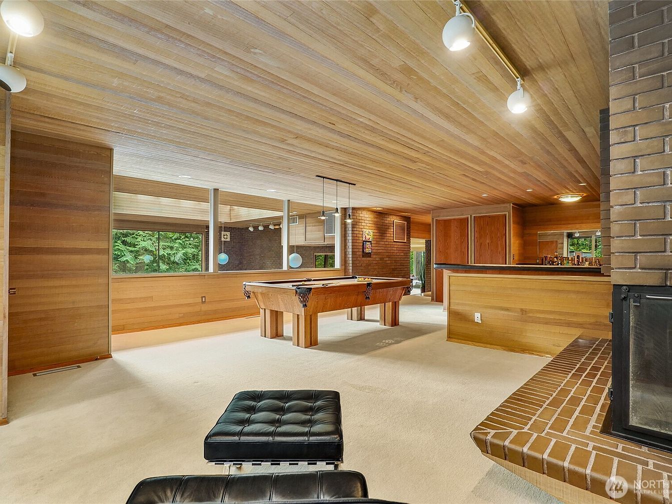 This architectural masterpiece, inspired by Frank Lloyd Wright and designed by Larry Woodin, embodies the essence of Mid-Century Modern design and offers a promising future for any success-oriented individual. Located on over 5 private acres with breathtaking views of Mt. Rainier, this 7480 sq. ft. home features 3-5 bedrooms and 4.5 baths, showcasing floor-to-ceiling glass walls and remarkable brickwork. Recently renovated, it includes an indoor pool, theater, and flexible living spaces, ideal for both relaxation and productivity. Situated near Issaquah and Bellevue, and priced at $3,189,000, this home combines luxurious living with exclusivity, making it a true art piece amidst nature’s serenity.