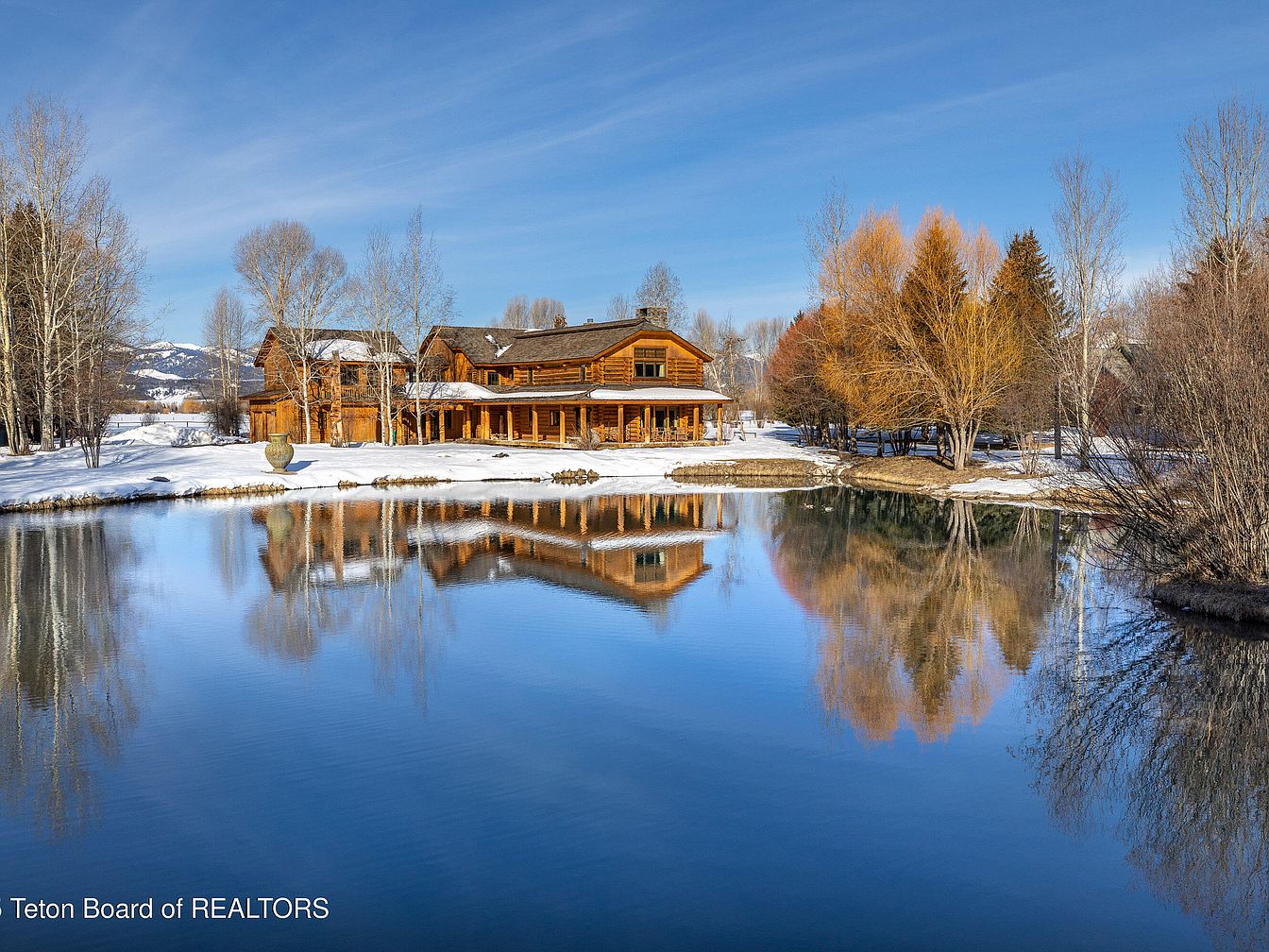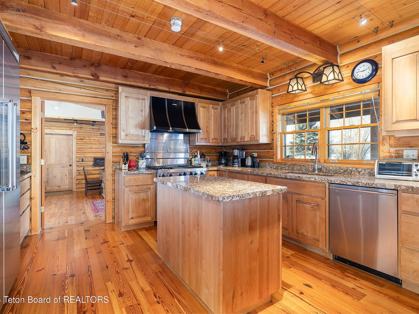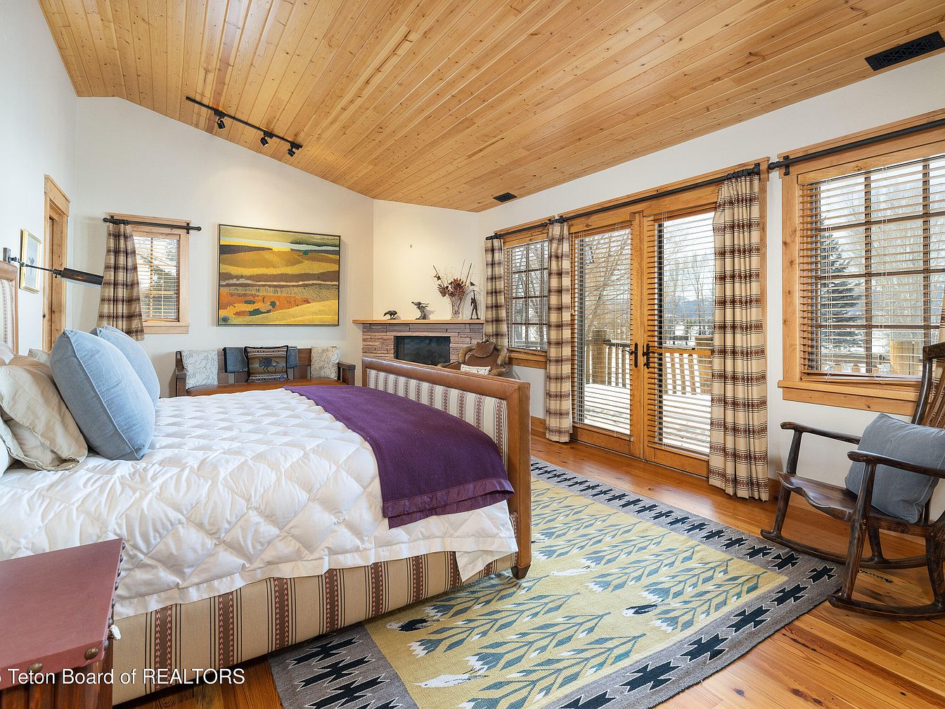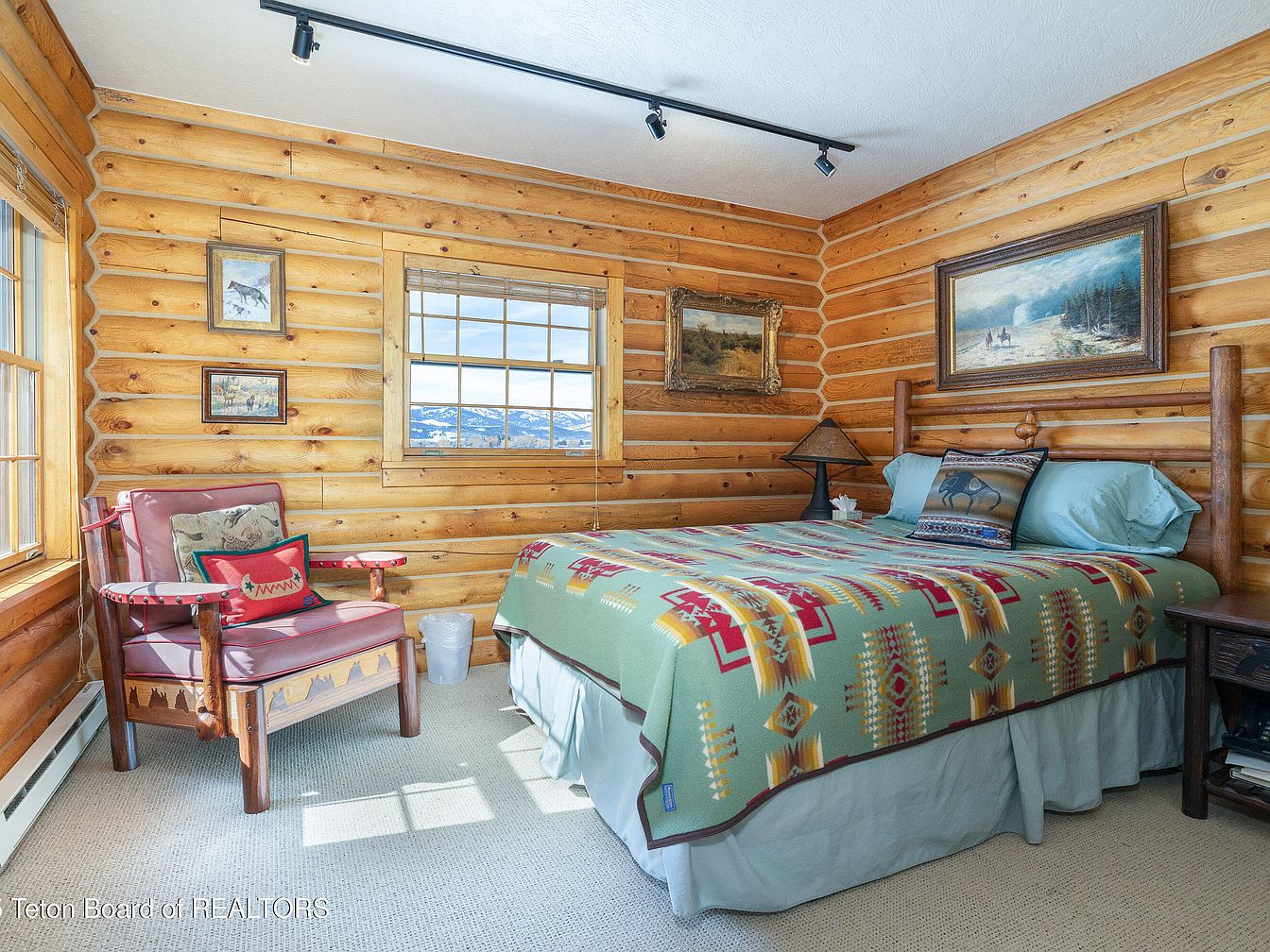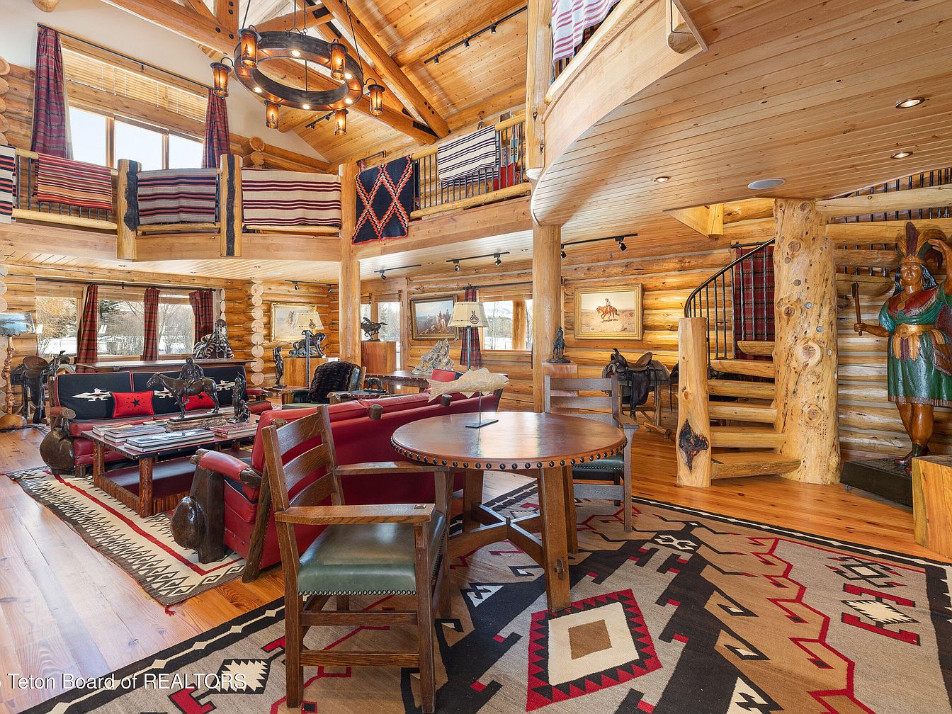 This exceptional 2-story log home, set on 10 private acres in the prestigious Big Trails subdivision near Jackson, WY, embodies the ideal blend of rustic charm and modern luxury. Boasting 4 bedrooms and 4 bathrooms within an expansive open-concept design, it caters perfectly to a success-oriented individual seeking serene yet sophisticated living. Built on a picturesque oxbow of Flat Creek, the home features large windows that invite nature indoors, enhancing its appeal. Recent renovations prioritize comfort and functionality, complemented by a versatile guest house. With a listing price of $10,250,000 and ample outdoor space for recreation, this home promises a tranquil lifestyle while providing proximity to local amenities.