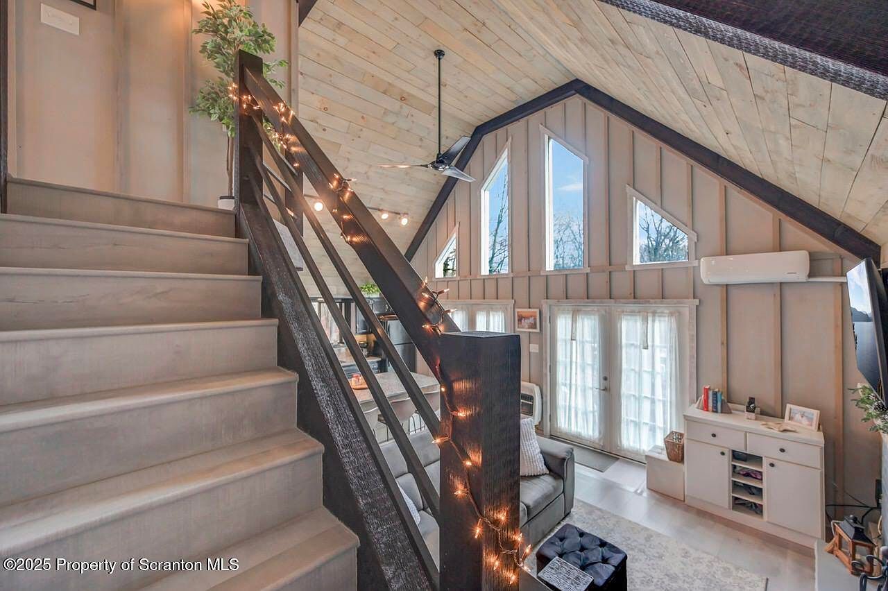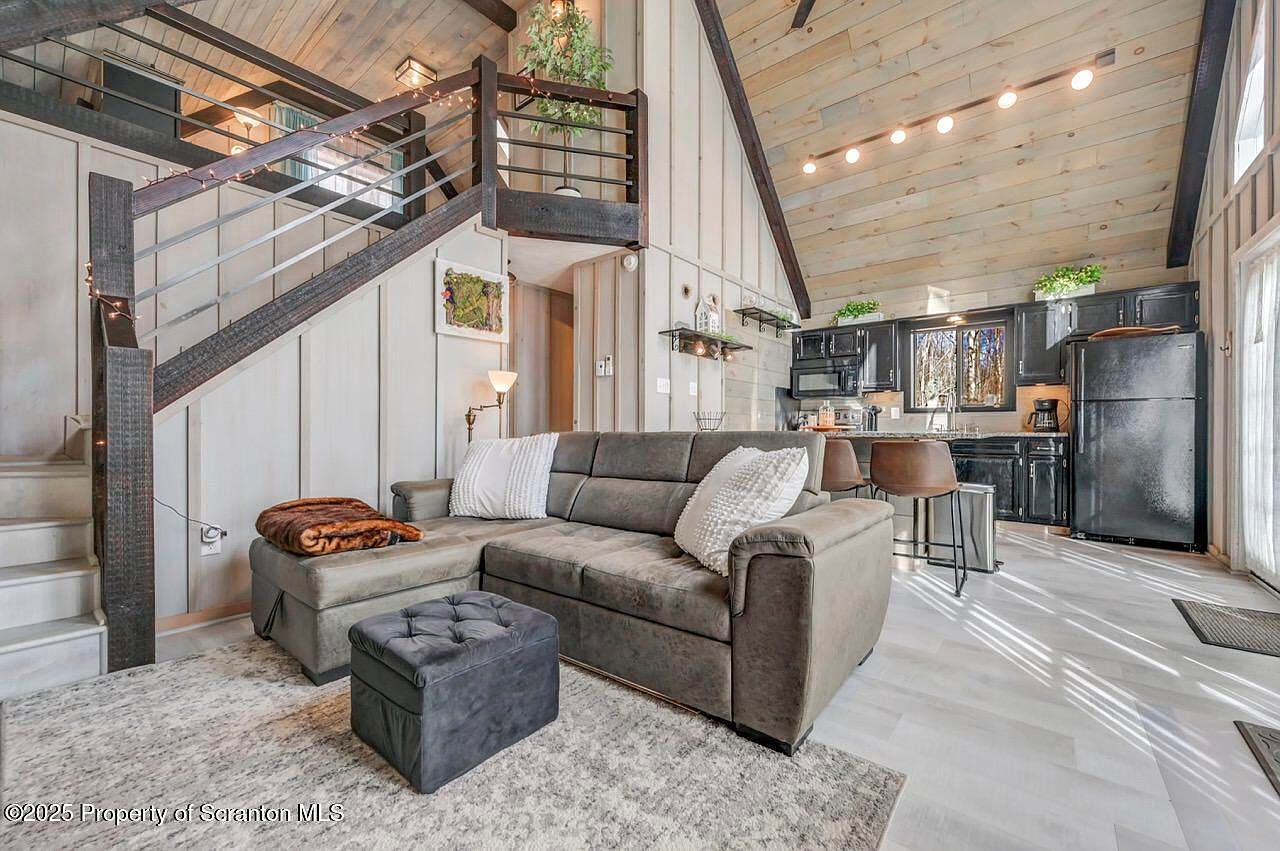 This cozy cabin in Thornhurst, PA, represents an ideal blend of comfort and success, perfect for future-oriented individuals seeking both tranquility and accessibility. Nestled on a serene 1-acre wooded lot, it boasts a modern interior with updated bathrooms and a spacious lofted owner’s suite, all crafted for year-round living. With a competitive listing price of $219,000, this turn-key home reflects both style and economic wisdom, featuring community amenities such as a swimming pool and clubhouse. Completed in the 21st century, recent renovations enhance its appeal. Located conveniently within a short drive of urban centers and nature attractions, it constitutes an unparalleled opportunity to own a slice of Pocono paradise.