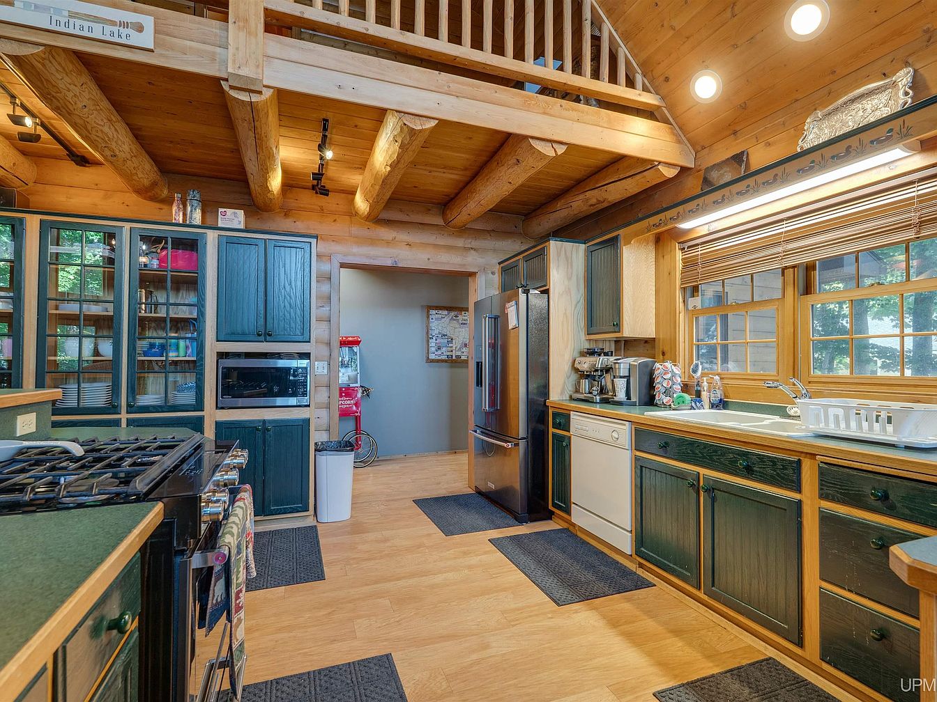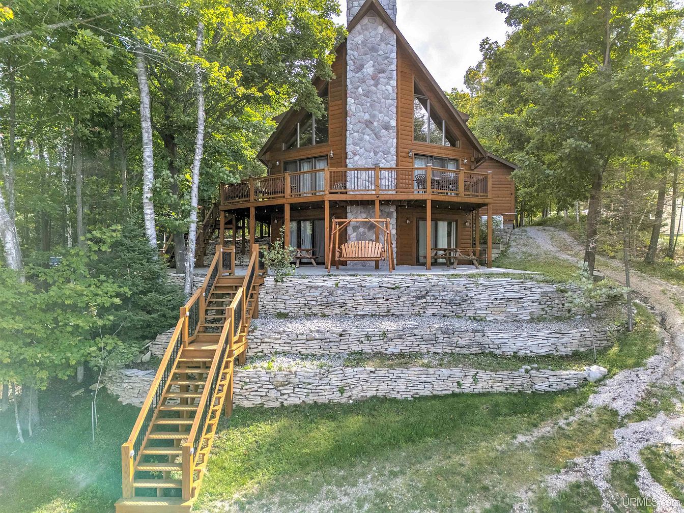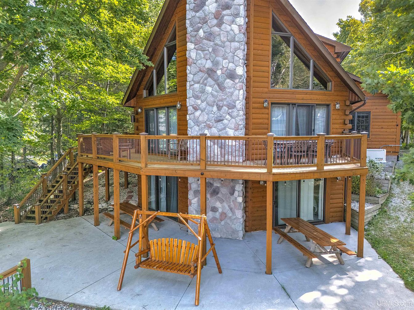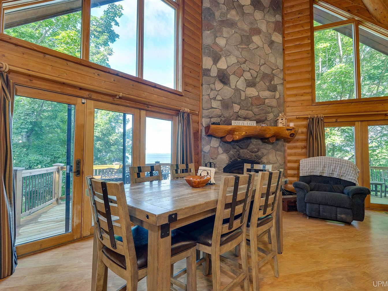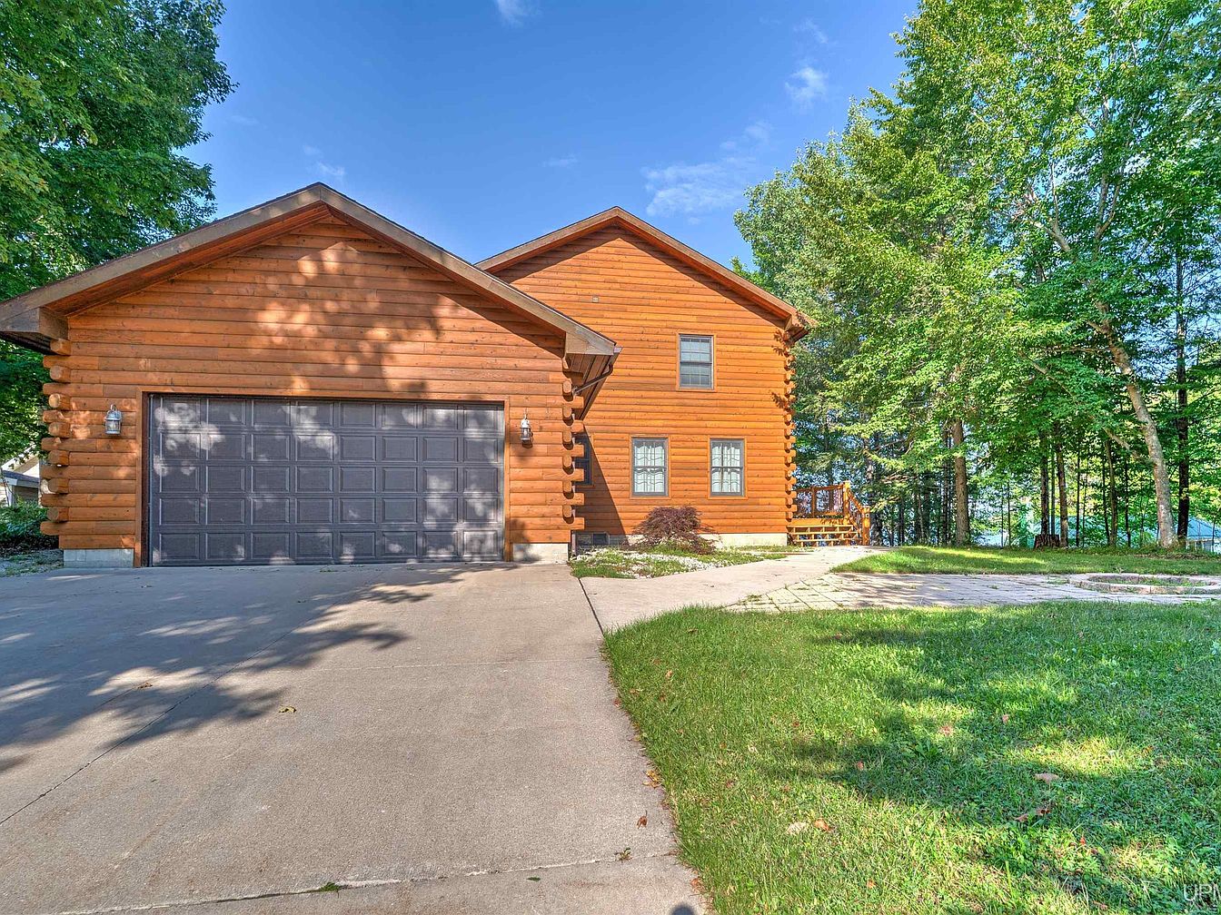 This stunning full log home, built on the east shore of Indian Lake, epitomizes success and future aspirations with its blend of rustic charm and modern amenities. Its architecture boasts a three-level design with vaulted cedar ceilings, highlighted by a grand fieldstone fireplace. Built to perfection, this three-bedroom residence was recently upgraded with new natural gas service and a Generac standby generator, enhancing comfort and efficiency. Priced at $1,100,000, the property spans a sizable plot with an attached two-car garage and additional storage in a 60’ x 80’ barn. Nestled in Manistique, Michigan, it offers breathtaking waterfront views and close proximity to outdoor activities, making it a haven for year-round living.