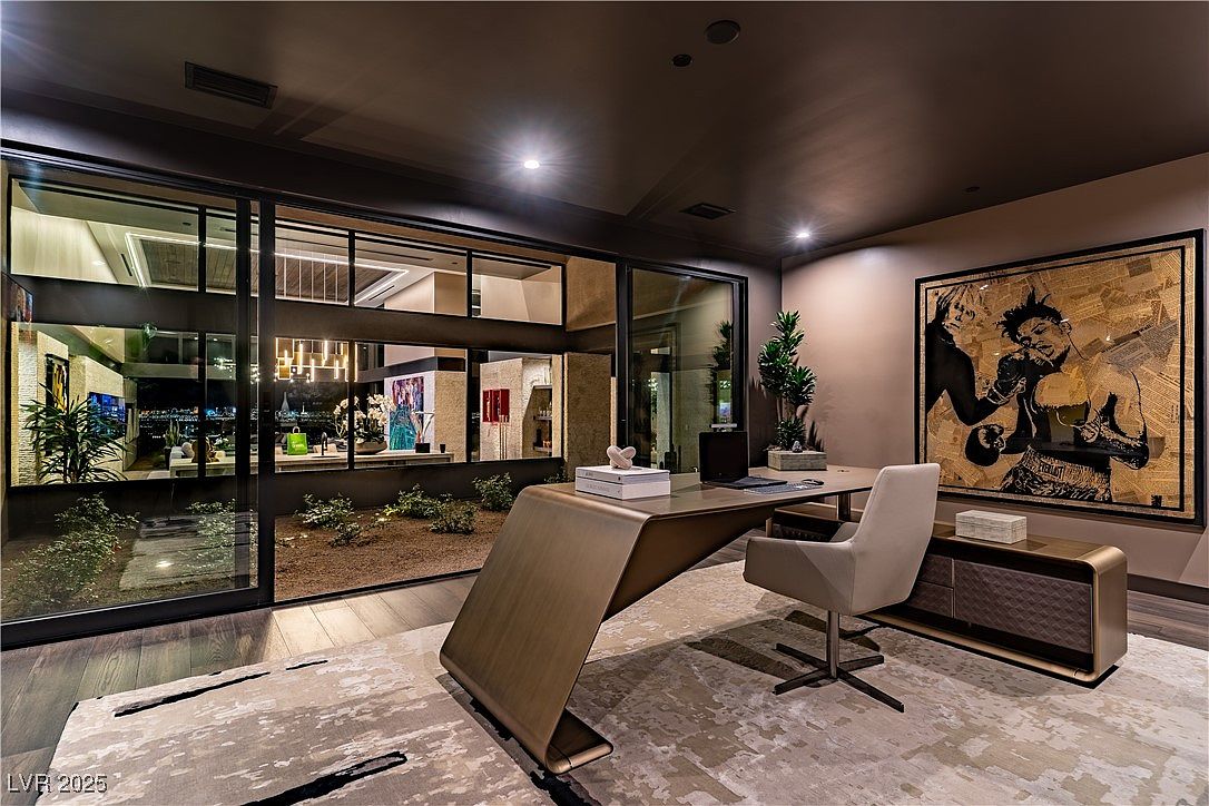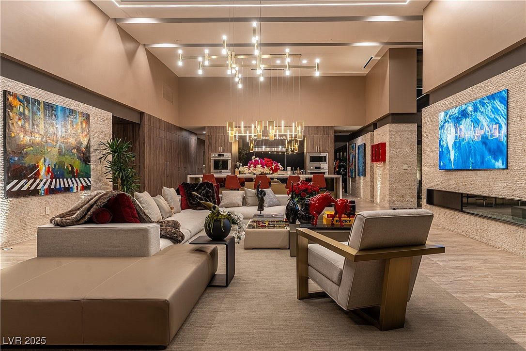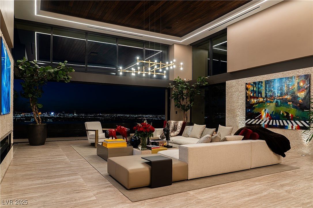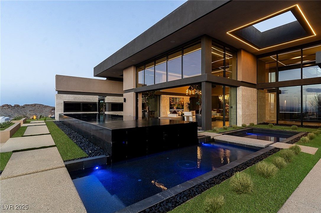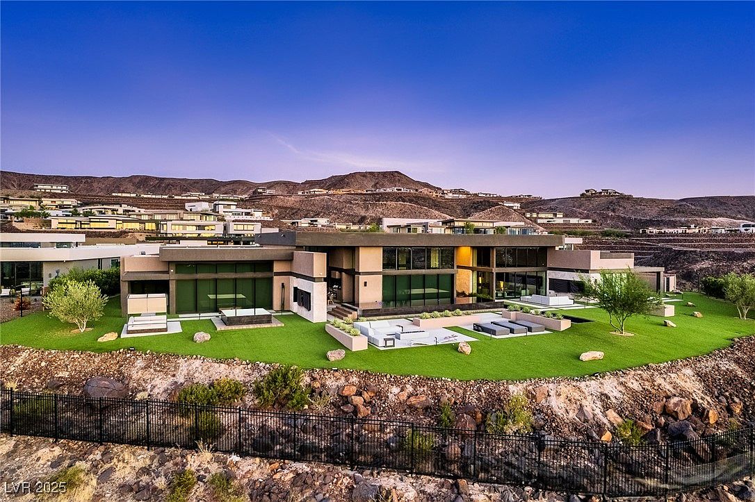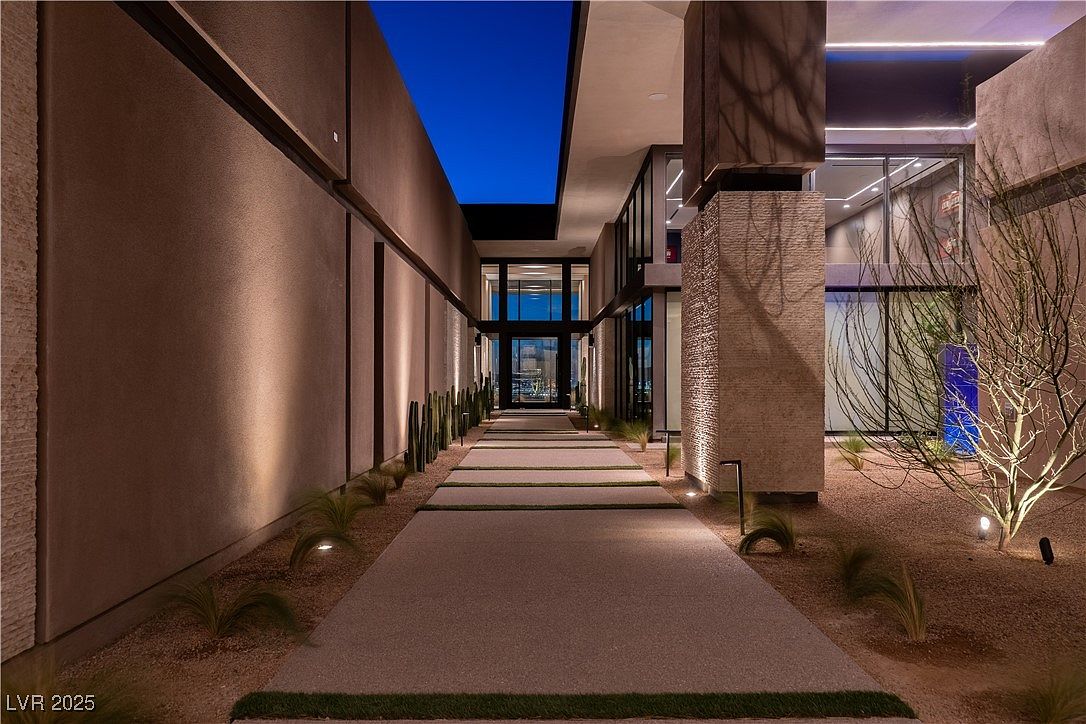 STRATA by Blue Heron is a modern architectural marvel, perched atop a privately gated cul-de-sac in Henderson, Nevada, offering unrivaled prestige with breathtaking city, Strip, and mountain views from every room. This 8,954 sq ft, single-level estate, an icon for success-oriented individuals, was designed by T. Jones and boasts over 2,400 sq ft of luxury outdoor living spaces. Built for those who seek both status and forward-thinking comfort, it features an elevated office, a gym, three wet bars, a game room with golf simulator, spa facilities, and expansive automated glass walls blending indoor-outdoor living. Listed at $19,500,000, STRATA’s immaculate design, recent innovations, and full array of entertainment amenities epitomize future-oriented luxury living.