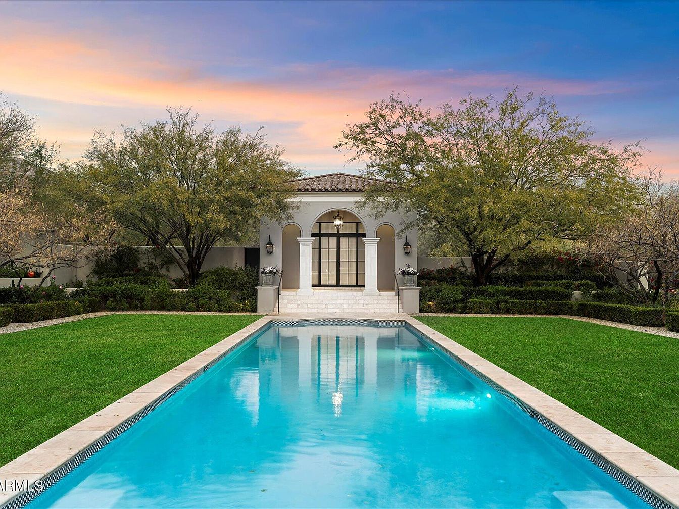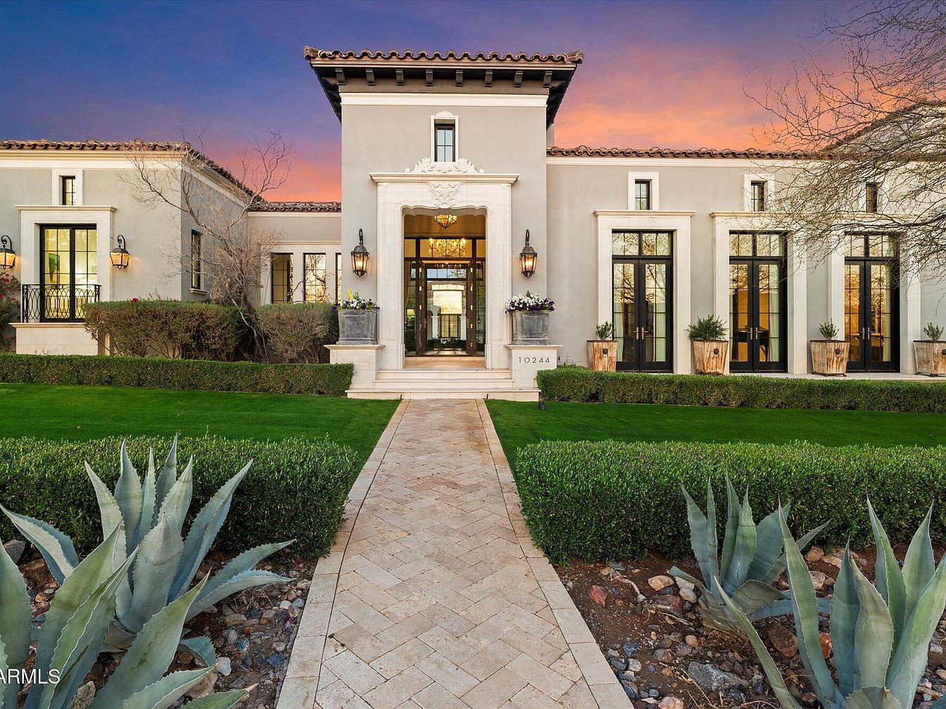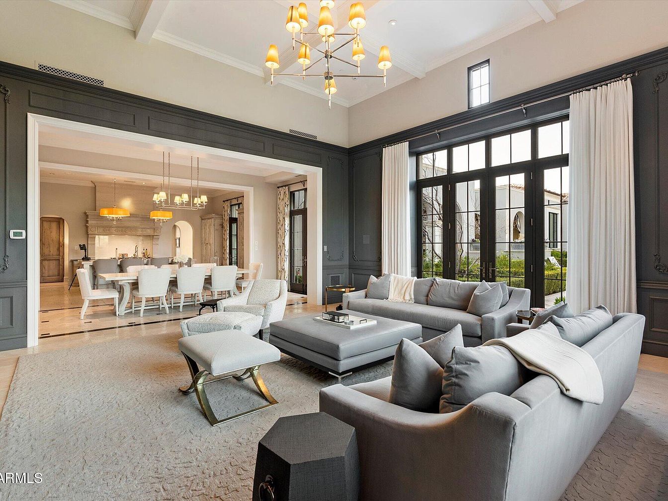 This stunning home in Scottsdale, AZ, embodies luxury and sophistication, strategically positioned on 1.70 acres with breathtaking McDowell Mountain views. Designed by architect Dale Gardon and featuring interiors by Rebecca Salcito, this property boasts a soft white kitchen with a marble island and expansive living spaces, including five en-suite bedrooms and an elegant primary suite with a private terrace. The architectural style harmonizes with its desert surroundings, offering both elegance and functionality. Built to accommodate a successful lifestyle, it was recently updated to include a heated lap pool, spa, and outdoor grilling station, all listed at $10,500,000. With a generous square footage, this home is perfect for entertaining and luxurious living.