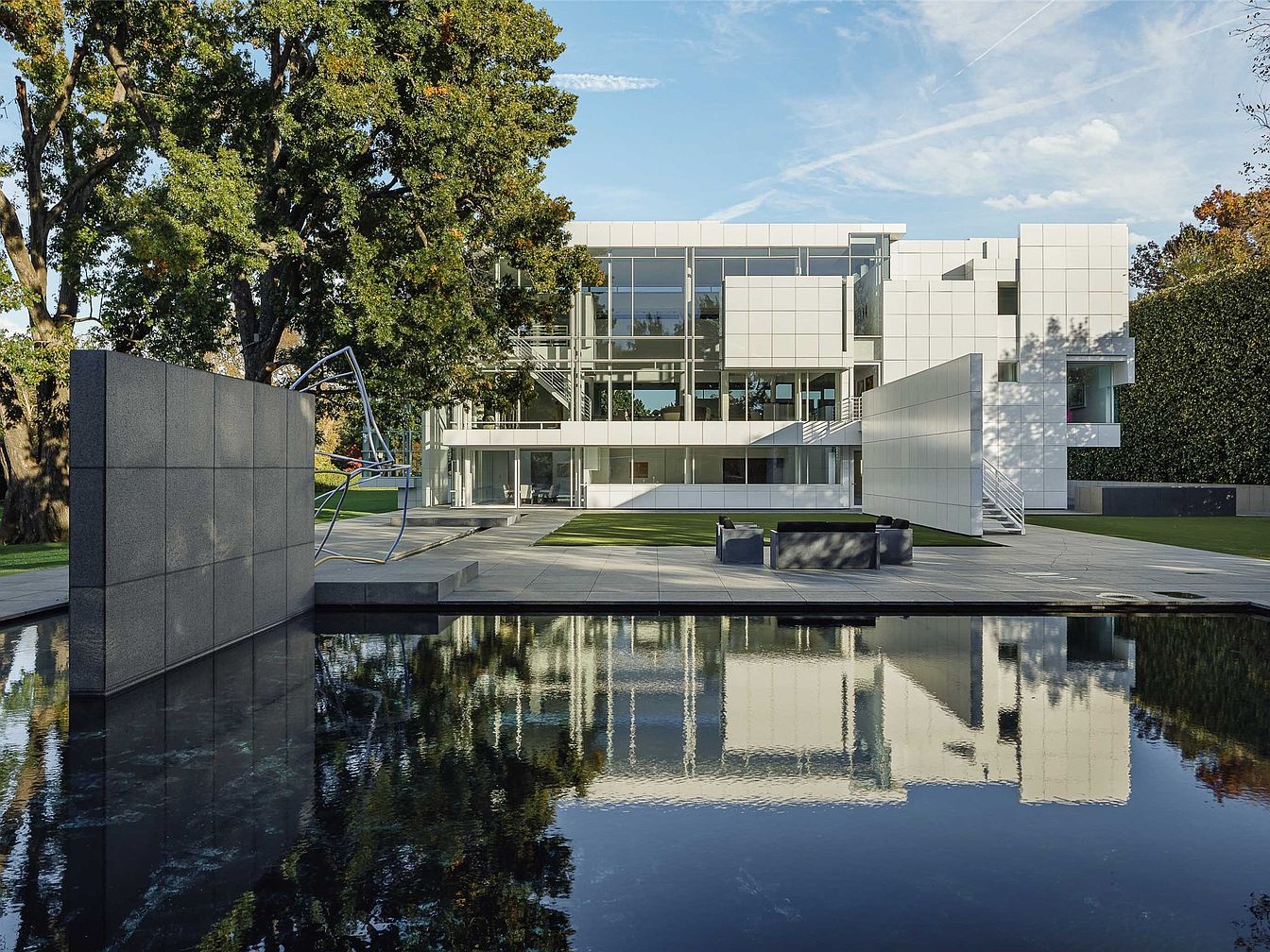The Rachofsky House in Dallas, designed by renowned architect Richard Meier, stands as an iconic symbol of modernist prestige and future-focused living, masterfully blending art and architecture. Its historical significance and status come from Meier’s visionary design, crisp white metal panels suspended above a black granite podiumm, making the home itself a work of art. Perfect for the success-driven, its flowing spaces, floor-to-ceiling windows, and seamless indoor-outdoor interplay inspire productivity, reflection, and serenity, while the luxurious grounds host a lake and ancient oaks. Built to frame views and harness light throughout the day, the house balances public grandeur and private respite. With a Dallas address, listed at $23,000,000, it epitomizes luxury, innovation, and the enduring value of architectural mastery.