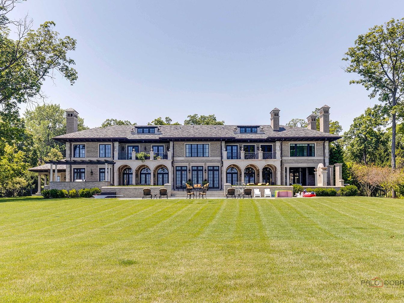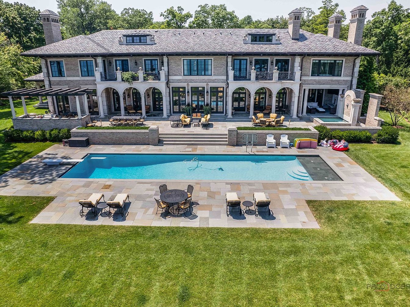 This 10,000 SF estate in Lake Forest, IL, exemplifies luxury and success, set on 5.27 acre grounds with 570 feet of Lake Michigan frontage, boasting historical significance as part of the former McCormick estate. Built in 2019, it combines sophisticated architectural style with modern technology, featuring radiant heated floors, geothermal heating, and a grand marble staircase. Recent renovations enhance its appeal, including elaborate outdoor amenities with multiple loggias, a pool, and a stunning boathouse. Listed at $27.5 million, this opulent residence epitomizes future-oriented living, catering to discerning individuals. The property also includes extensive garage space for 22 cars, providing ample room for luxury vehicles, while its idyllic location promises tranquility and exclusivity.