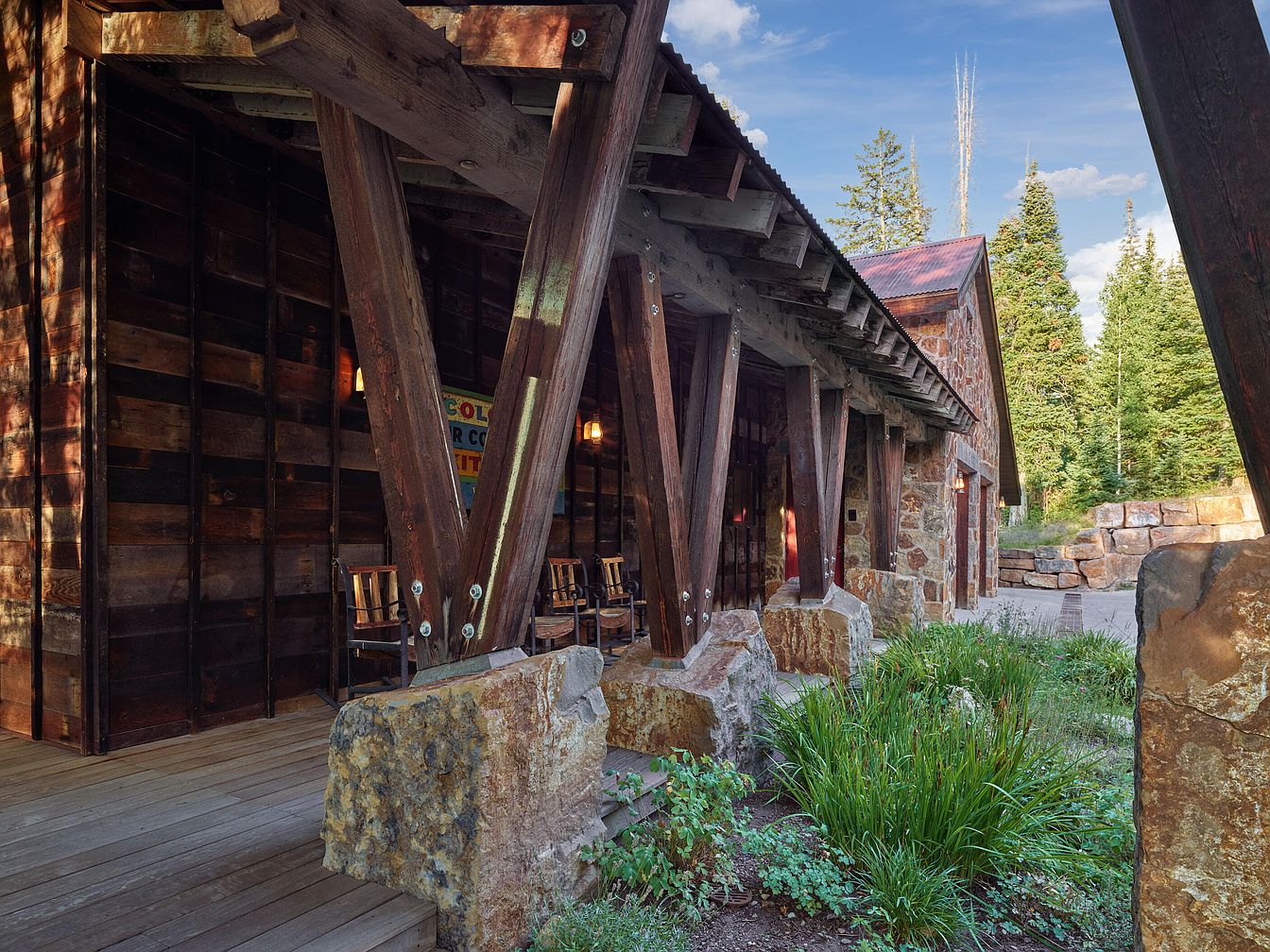 Nestled among towering pine and aspen trees, this expansive mountain home blends rustic charm with modern luxury. The exterior features rich red wood siding paired with natural stone on the lower level, creating a harmonious connection to the surrounding forest. Large windows and glass doors allow for ample natural light and breathtaking woodland views from every room. Multiple balconies and outdoor seating areas offer family-friendly gathering spaces, perfect for conversation or outdoor dining. The peaceful setting, along with the home’s warm, earthy color palette, provides a serene retreat ideal for families seeking adventure and relaxation in nature.
