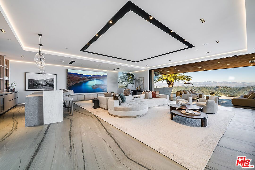Perched in the prestigious Bel Air, this contemporary architectural estate embodies sophistication and modern living, making it ideal for a success-oriented individual. Built with a focus on luminous design and sustainable integration with nature, the home features exquisite details such as custom illumination and mature olive trees. Its sleek lines and open-plan layout promote an atmosphere of creativity and connection, complemented by a state-of-the-art culinary setup and luxurious entertainment spaces including a cinema and private wellness retreat. With four kitchens, expansive outdoor living with a stunning infinity pool, and panoramic views, this estate, offered at $38 million, spans a grand plot area and square footage designed for both relaxation and inspiration.