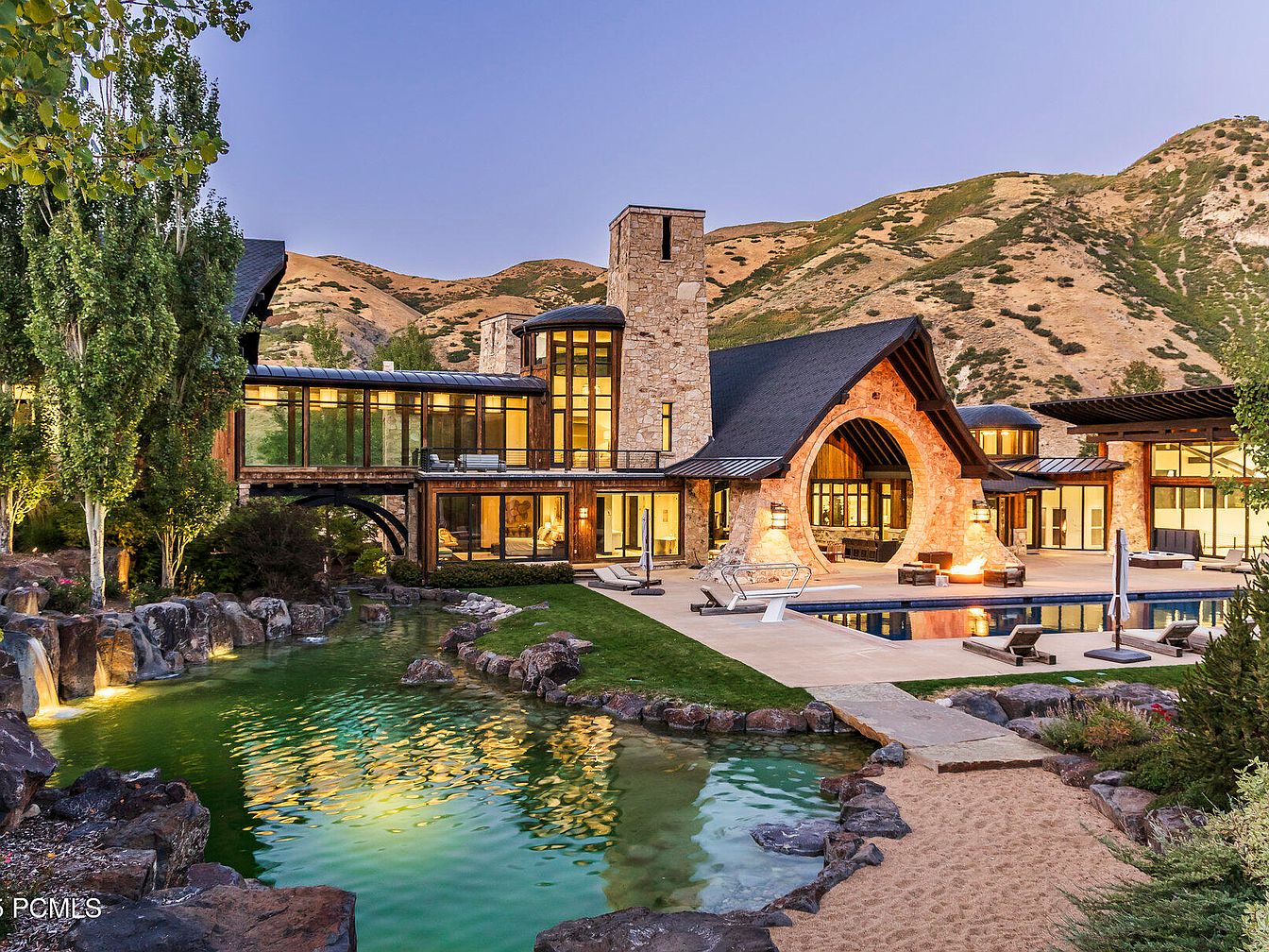 This remarkable estate, inspired by the Lord of the Rings and designed by Michael Upwall, stands as a symbol of luxury and success amidst the scenic beauty of Provo Canyon. Spanning 30 acres, the 23,000 sq. ft. main residence and 6,200 sq. ft. guest house feature an architectural blend of local stones and reclaimed timber, creating a timeless aesthetic. Recent renovations enhance its allure, while amenities like an indoor basketball court, climbing wall, and outdoor pool elevate the lifestyle offered. Listed at $43,000,000, the estate offers sweeping views and privacy, with proximity to amazing recreational activities, making it a perfect sanctuary for a success-oriented individual.