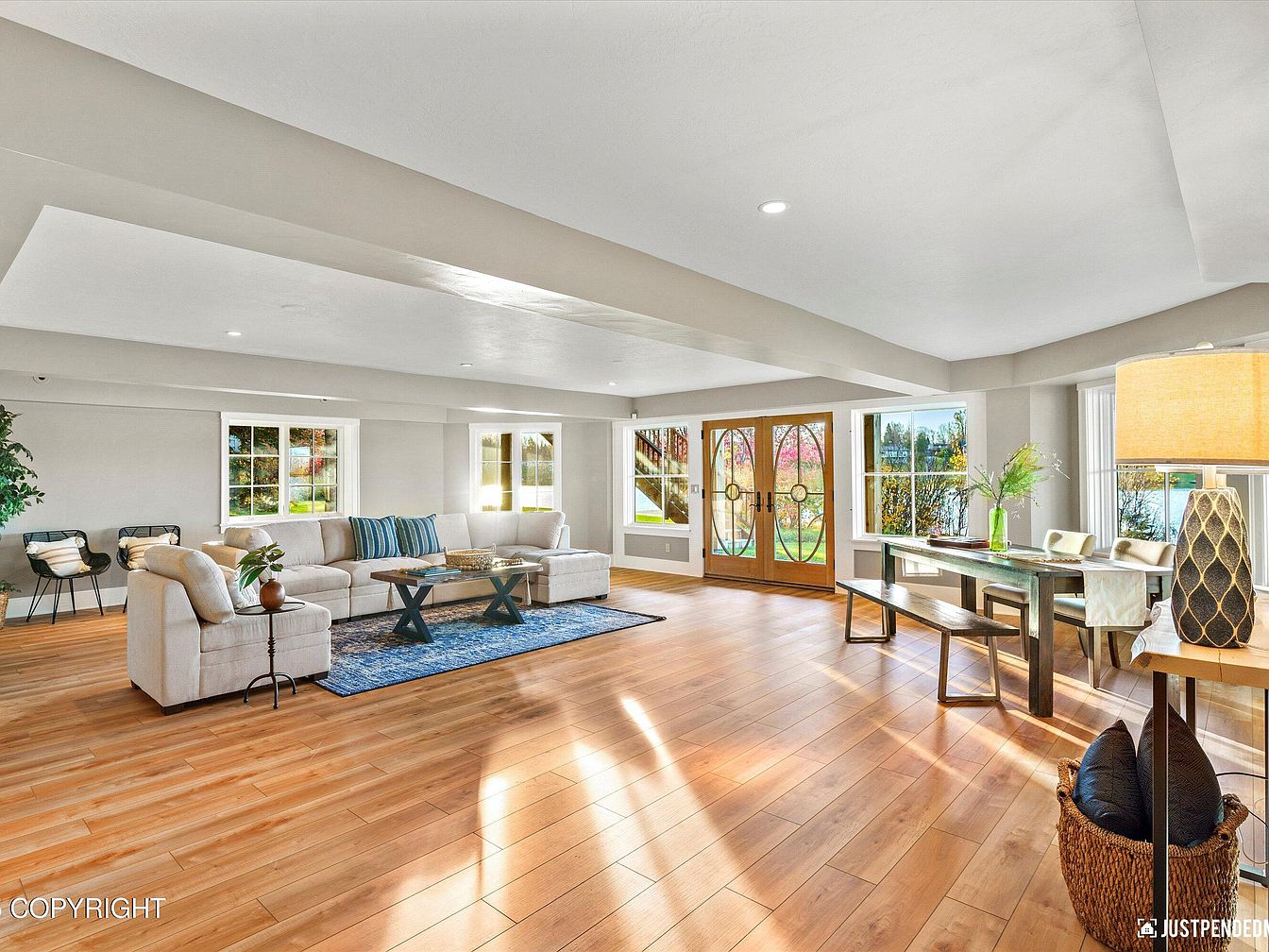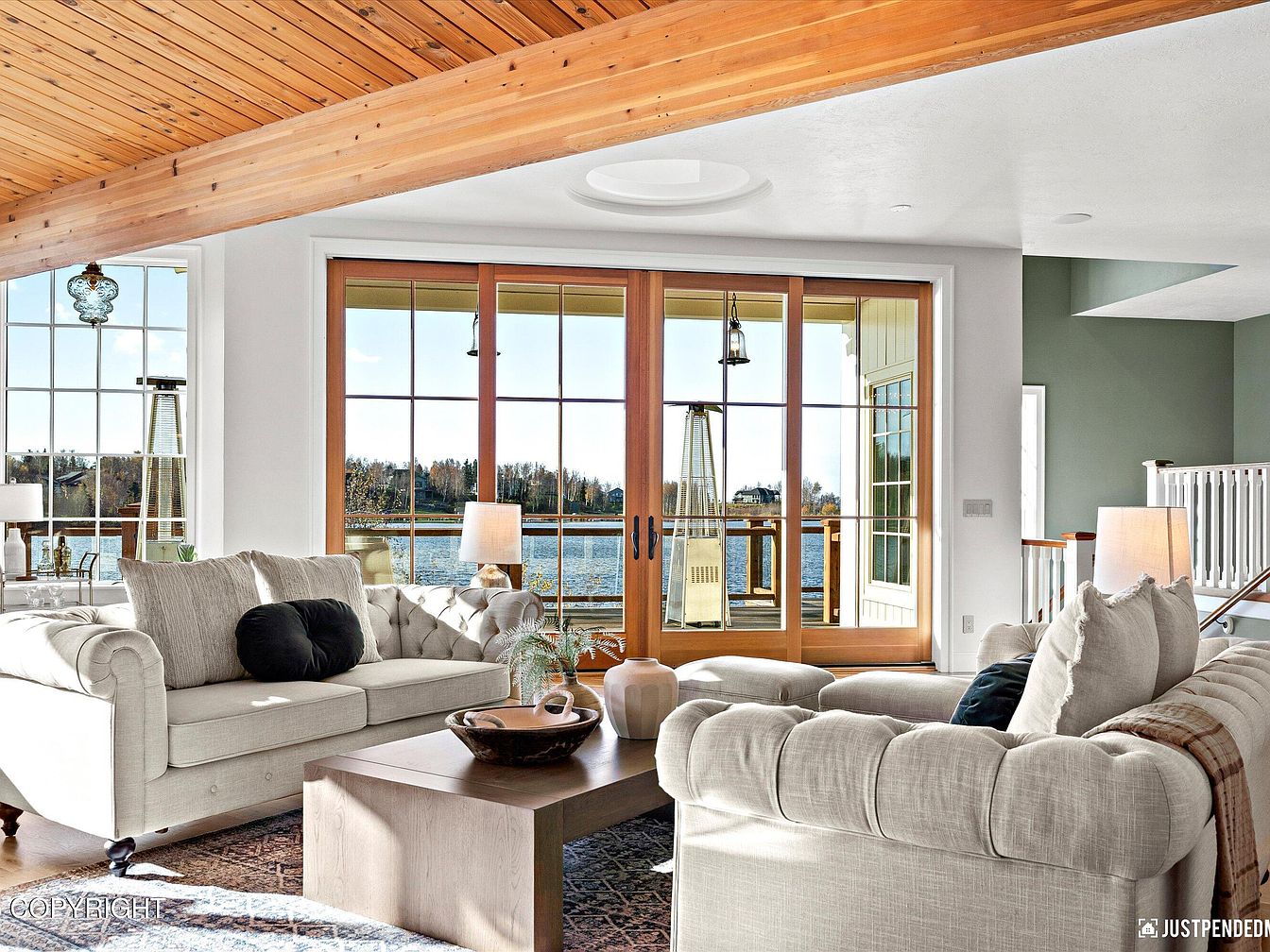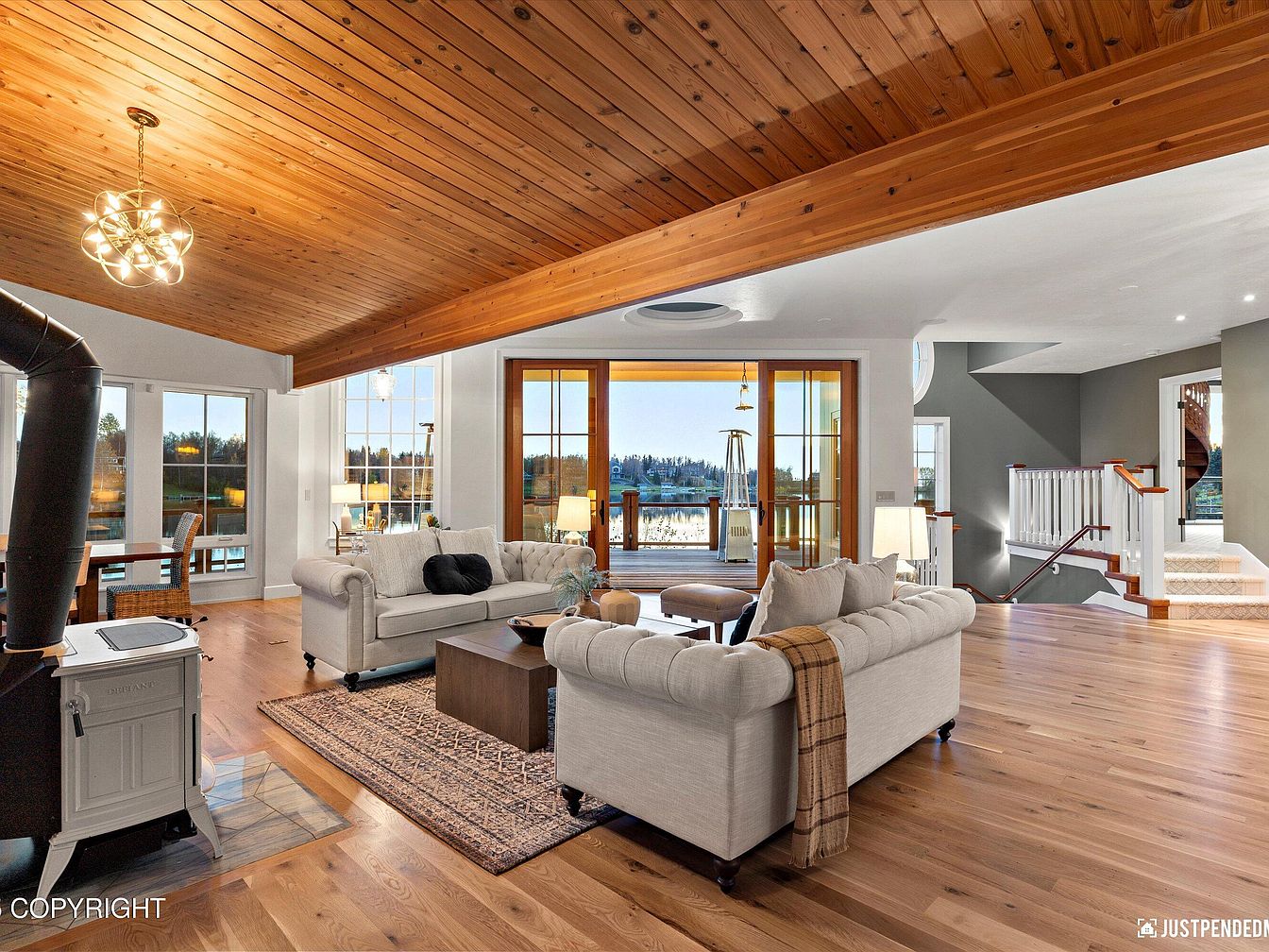 Positioned on the idyllic north shore of Campbell Lake, this stunning New England shingle home, built between 2008 and 2010, embodies status and success with its 220 feet of pristine lake frontage and breathtaking mountain views. Architecturally refined, it boasts custom finishes including oak hardwood floors, a gourmet kitchen with premium appliances, and a remarkable antique spiral staircase from Spain. The artistic interiors feature unique lighting and tile work by an Alaskan Native artist, creating an inviting atmosphere perfect for future-oriented lifestyles. Recently renovated with modern comforts, this 5,800 square foot residence is listed at $3,495,000, offering an unmatched opportunity for luxurious lakeside living in Anchorage, AK.