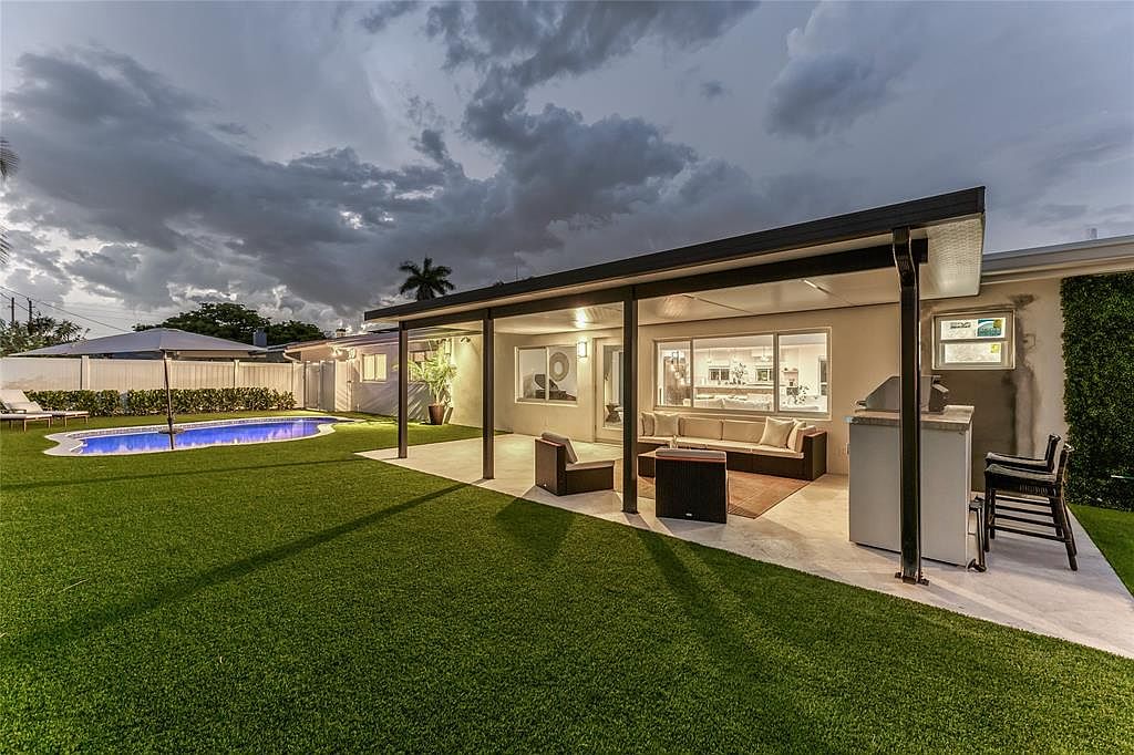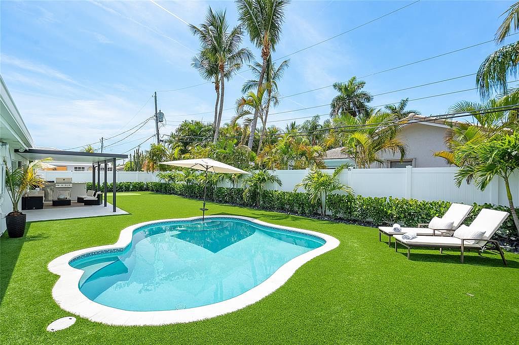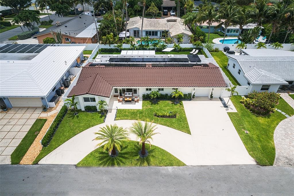 This fully solar-powered home in Pompano Beach exemplifies modern luxury and sustainability, appealing to success-oriented individuals. Built recently, it features state-of-the-art technologies including backup batteries and EV charging. The sleek, contemporary architectural style is complemented by amenities like a heated saltwater pool and outdoor kitchen. Located steps from the park and near the beach, yacht club, and marina, it’s ideally suited for an active lifestyle. With 4 bedrooms and 4 bathrooms, this spacious home boasts white oak hardwood floors and high-end kitchen appliances, fostering a sense of elegance. Recently renovated outdoor spaces enhance its allure. Listed at $1,450,000, it occupies a generous plot area, making it a prime investment in luxury living.