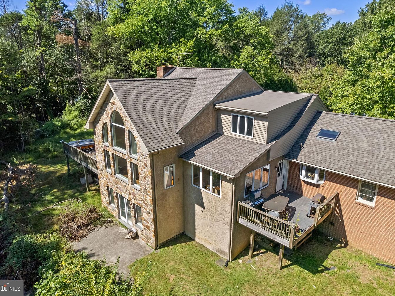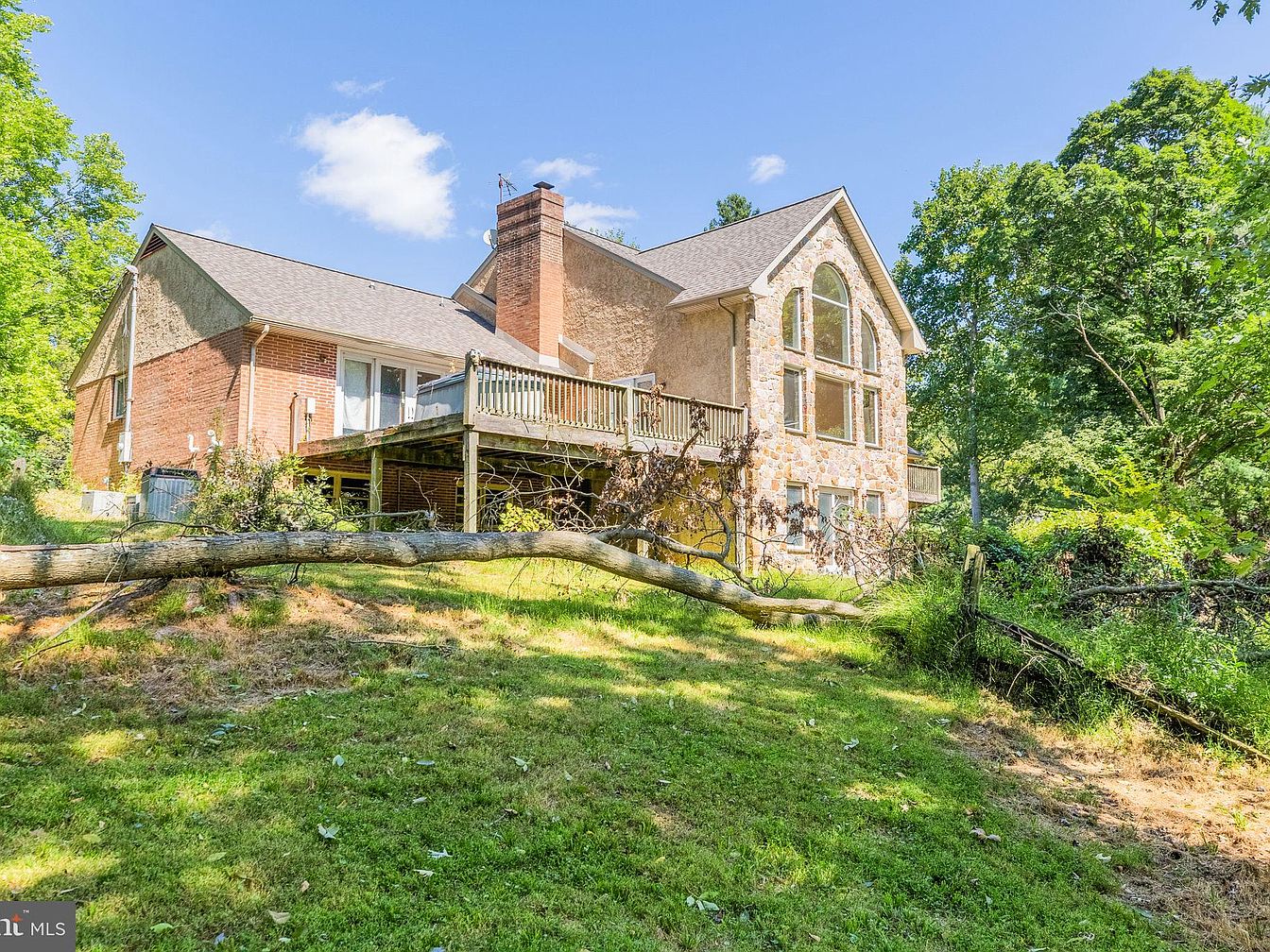 This stunning exterior showcases a spacious deck that seamlessly integrates the home with nature. The dual-story design features a unique combination of stone and brick, exuding warmth and character. Large windows allow abundant natural light, creating a welcoming atmosphere. The carefully landscaped yard promotes family gatherings, while the lush greenery surrounding the property offers a sense of privacy and tranquility. The sturdy deck provides an ideal space for outdoor dining or relaxation, perfect for entertaining guests or enjoying quiet evenings. With its charming aesthetics and functional layout, this home truly encapsulates a perfect family retreat.