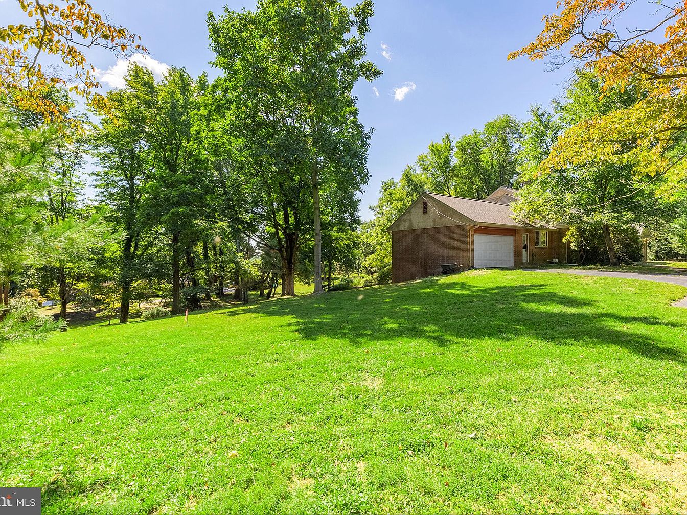 This picturesque front yard features a generous expanse of lush green grass framed by mature trees, creating a serene, inviting atmosphere. The home’s brick exterior complements the natural surroundings, while the lightly shaded areas offer pleasant spots for relaxation. A leisurely driveway leads to a spacious garage, enhancing convenience for families. The architectural design showcases a traditional style, with a gently sloping roof and strategically placed windows that invite natural light. Vibrant foliage hints at the changing seasons, while the overall layout provides ample space for outdoor activities, making it a perfect setting for family gatherings or play.