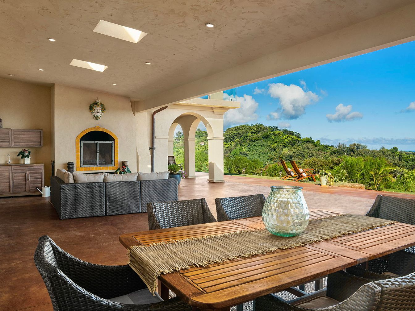 ‘Aina Lani, an extraordinary estate in Kalaheo, HI, merges historical prestige with modern luxury atop 5.5 acres bordered by the National Tropical Botanical Garden. Offering 7,600+ square feet, its flexible layout includes a four-bedroom main home and two-bedroom guest quarters, ideal for success-driven, future-oriented owners who value privacy and sustainability. Architectural highlights, such as soaring open-beam ceilings, hand-applied plaster walls, and French oak flooring, blend with refined amenities and exceptional ocean and mountain vistas. Built with concrete and steel for enduring resilience and powered by 30 solar panels and Tesla Powerwalls, the $7,499,000 residence also boasts mature fruit orchards and space for further expansion, making it a rare legacy property in one of Kauai’s most desirable and significant locations.