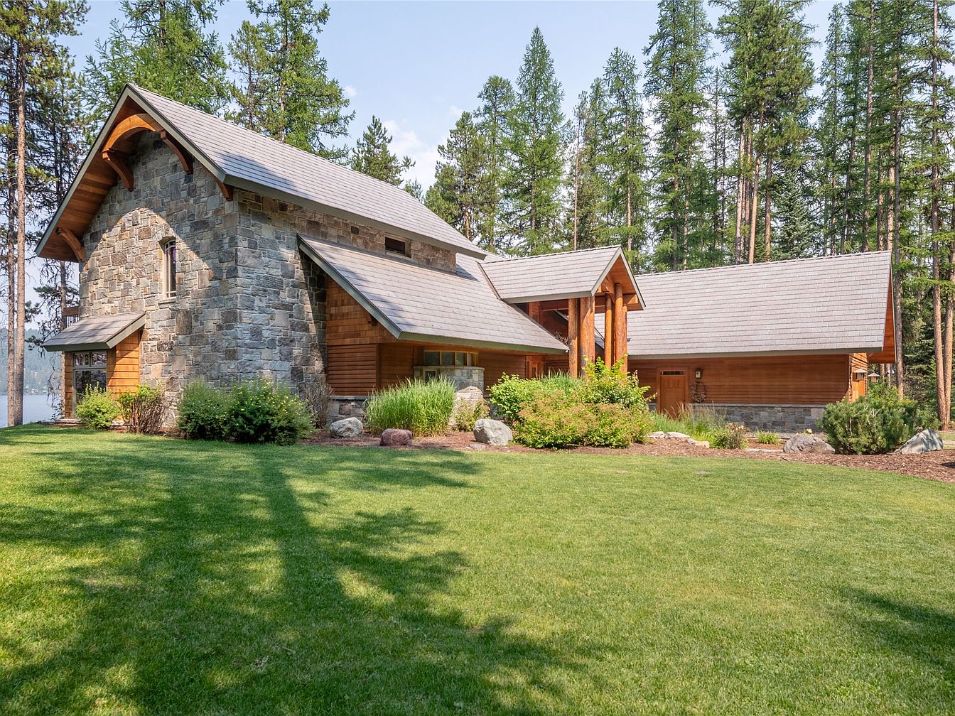 This stunning 1.75-acre, 4,350 sq. ft. custom-built home on Placid Lake’s south shore in Seeley Lake, Montana, epitomizes both historical craftsmanship and the ultimate status appeal, perfect for a success-driven, future-oriented individual. Showcasing a robust post-and-beam architectural style with locally sourced Montana Chief Cliff Stone and Clear Vertical Grain Cedar siding, the property fuses durability with timeless elegance. Built with energy efficiency, superior air quality, and artistic touches, it’s a haven for modern innovation and tradition. The four-bedroom, three-bath luxury residence features lakeview suites, rich handcrafted details, and a detached shop with extra living space. Recently updated with a DaVinci Slate composite roof (2020) and a new floating dock, the $3,250,000 estate stands as a sanctuary for those who demand unparalleled excellence and forward-thinking living.
