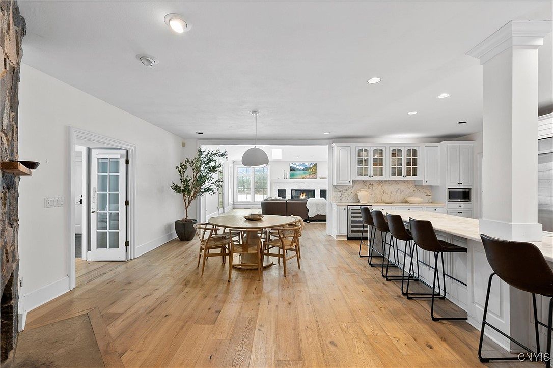 Built in 1825, this stunning 7,000+ sqft estate in Cazenovia, NY, perfectly embodies a successful, future-oriented lifestyle. Set on 4.3 acres, the home harmonizes historic charm with modern conveniences, merely steps from vibrant village amenities like shops and Cazenovia Lake. Its elegant architectural style features timeless detailing, multiple fireplaces, and recent renovations, including a gourmet kitchen and expansive Great Room, ideal for entertaining. With a listed price of $1.3 million, it boasts seven bedrooms, luxurious outdoor living with a saltwater pool, and a usable lower level for recreation or a gym. This unique property not only offers a serene retreat but also an opportunity for sophisticated living.