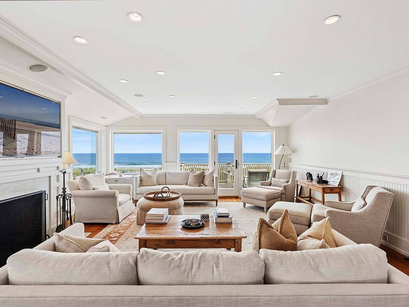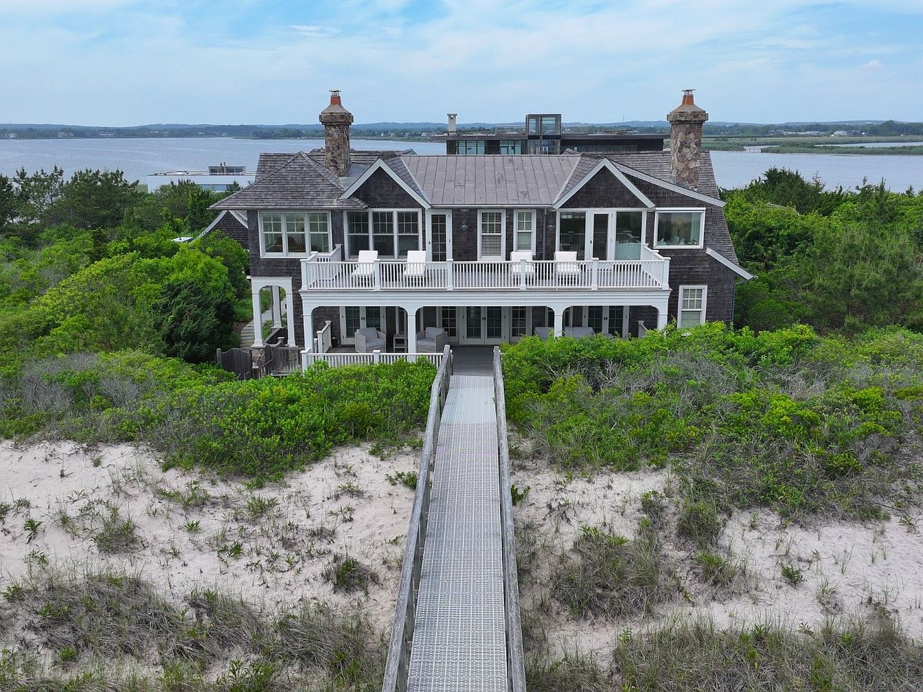 This extraordinary shingle-style estate, designed by renowned architect Francis Fleetwood, epitomizes status and exclusivity with its prime location on Dune Road in Water Mill, NY. Set on over 3 acres with 300 feet of private ocean frontage and a private boardwalk, it offers unmatched privacy and prestige, making it ideal for those aspiring to success and future-oriented living. The approximately 4,200-square-foot home boasts five luxurious en-suite bedrooms, picturesque ocean and bay views, an inviting open-concept kitchen and living area with a fireplace, and an oceanfront deck perfect for entertaining. Recent upgrades include a modern pool, a cabana with wet bar, an elevator, and an outdoor shower. Listed at $42,500,000, it truly represents a rare coastal paradise.