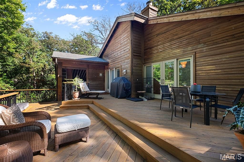 Set on 3.18 acres in Chesterfield, this contemporary ranch home embodies luxury and tranquility, catering perfectly to success-focused individuals. Built with soaring teak ceilings and cedar beams, its architectural style blends modern elegance with natural beauty. Key features include expansive views through floor-to-ceiling windows, a lavish primary suite with a sunken Jacuzzi, and an open layout ideal for entertaining. The property’s recent renovations enhance its appeal, including newer multi-level decks featuring a built-in spa. With a listing price of $925,000, this unique home combines acreage, privacy, and accessibility to Chesterfield’s amenities, making it a quintessential sanctuary for those aspiring to future success in a serene environment.