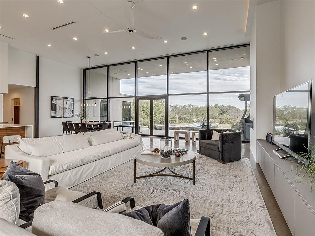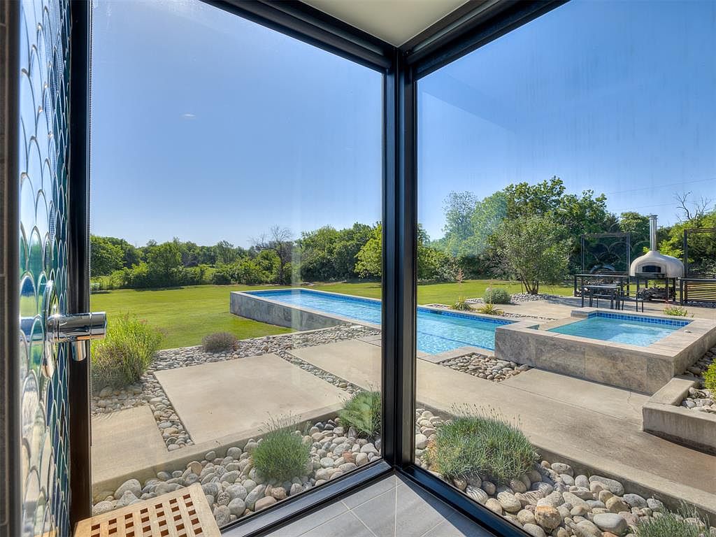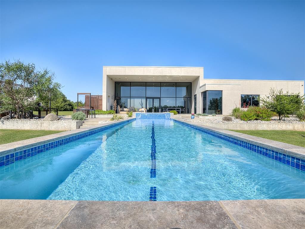 This striking custom-built modern retreat, constructed in an unspecified year, epitomizes luxury living with a status appeal that combines contemporary design and tranquility. Perfectly suited for a future-oriented individual, its single-level layout and wide hallways promote accessibility and ease, while the expansive 10-acre plot provides space for personal pursuits. Architectural elements include a dramatic 35-foot curtain wall offering panoramic views and showcasing an outdoor lap pool. Recent upgrades like solar panels and a Generac generator reflect a commitment to sustainability. With three bedrooms, a state-of-the-art chef’s kitchen, and an outdoor kitchen featuring a wood-fired pizza oven, this home is listed at $1,299,000, offering an unparalleled lifestyle in Jones, OK.