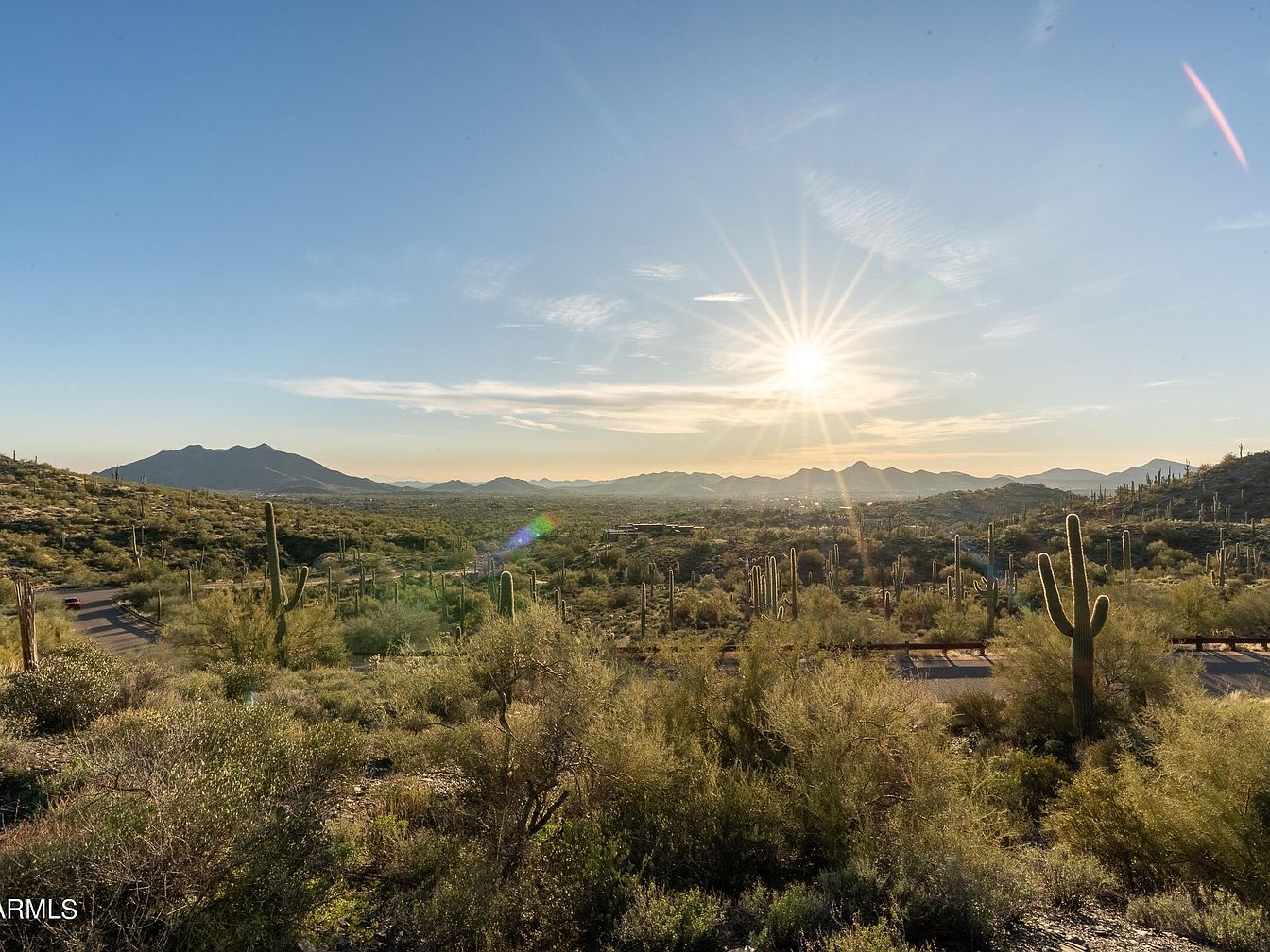 A stunning panorama of the Arizona desert unfolds, showcasing rolling hills dotted with towering saguaros and lush vegetation. The vibrant green cacti contrast beautifully against the warm earth tones of the land, while the soft, golden light of the setting sun casts a serene glow over the landscape. The sky transitions from azures to gentle pastels, enhancing the tranquil atmosphere. Ideal for family gatherings or peaceful retreats, this location offers an inviting connection to nature. With ample space and breathtaking views, it promises a perfect blend of outdoor adventure and relaxation, making it an inspiring choice for future home designs.