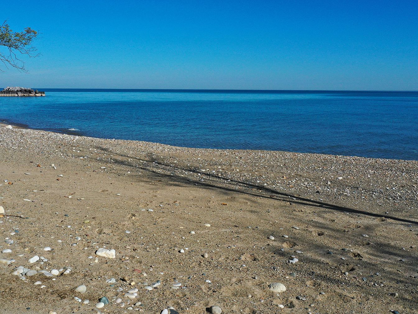 Nestled along a tranquil shoreline, this idyllic beach scene captures the essence of coastal living. Fine, golden sands stretch gracefully, dotted with rounded pebbles, inviting leisurely strolls. The azure waters sparkle under the clear sky, showcasing an expansive view that creates a sense of openness and freedom. A subtle shoreline curves towards a sturdy pier, adding a touch of rustic charm. Gentle waves lap at the sand, providing a soothing symphony of sound. This space embodies natural beauty and relaxation, perfect for families seeking outdoor adventures or quiet moments by the sea, promising endless joy and serenity.