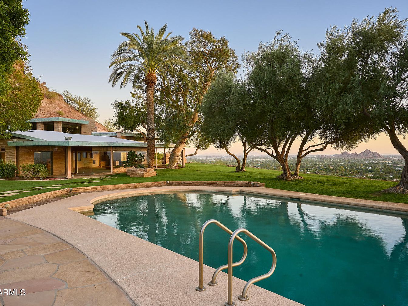 Perched on Camelback Mountain in Phoenix, this historic estate spans 23.66 acres and features a 4,661-square-foot residence built in the 1950s, showcasing Frank Lloyd Wright’s organic architectural style with expansive glass walls and stone elements that harmonize with the landscape. Known as the ‘Merry Christmas House,’ this revered property offers panoramic valley views and is a rare opportunity for future development, potentially being subdivided into four parcels. Priced at $24 million, it combines privacy and breathtaking vistas with the excitement of renovation or reimagination. Recently conceptual designs by architect Mark Candelaria inspire further possibilities, making it an unmatched gem for a visionary homeowner.