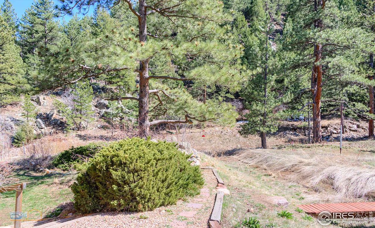 Nestled in a serene setting, this backyard reveals a blend of nature and comfort. Lush greenery includes mature pine trees and carefully maintained shrubs, creating a tranquil atmosphere. The versatility of the space invites family gatherings or peaceful solitude, with ample room for outdoor activities. A stone pathway leads through the garden, encouraging exploration. The natural elements harmonize with a rustic wooden deck, perfect for alfresco dining or relaxation. This outdoor haven showcases a rich palette of greens and earthy tones, offering a perfect backdrop for enjoying the beauty of the surrounding landscape and creating cherished memories.