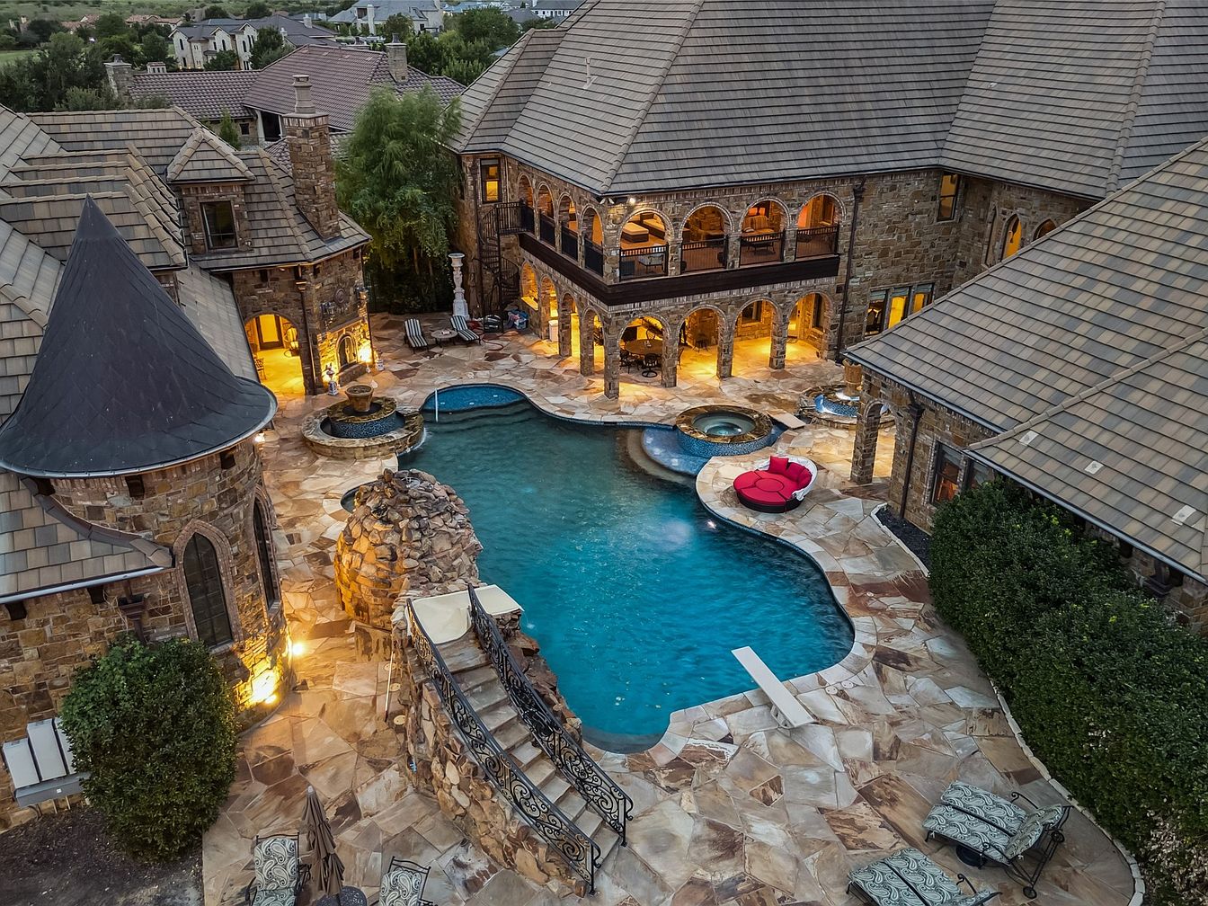 This architectural masterpiece, built by a Texas Rangers owner, embodies prestige and success in the exclusive Montserrat enclave. Spanning over two acres, it boasts 4,734 SF of guest quarters and resort-like amenities, including indoor/outdoor pools, a private pond, and a sports court. Constructed with a remarkable castle-style design, the home features seven luxurious bedroom suites with spa-inspired baths, a wine room, and a private theater, ideal for sophisticated living. With meticulous renovations and a current listing price of $11.75 million, this property offers unparalleled opulence in Fort Worth, TX, attracting future-oriented individuals seeking grandeur and privacy.