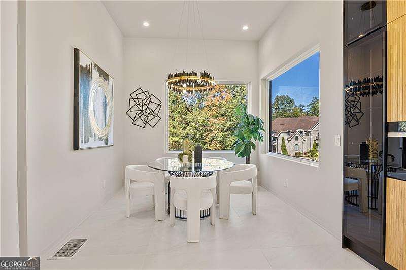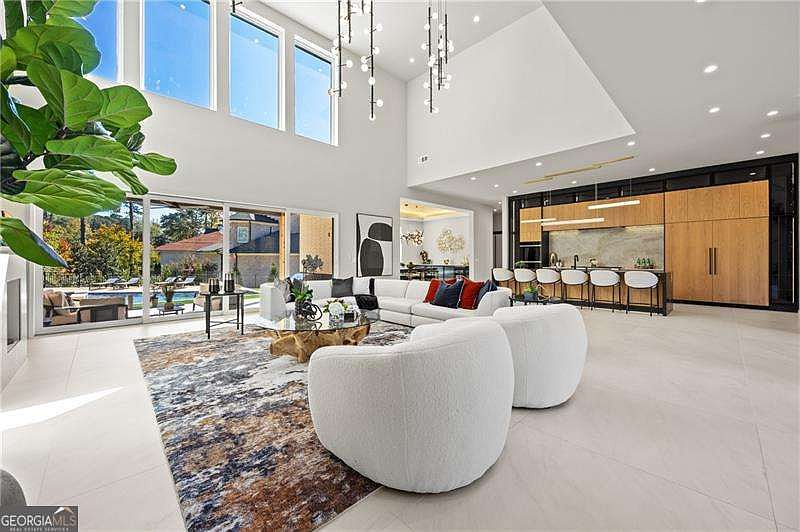 This striking modern estate in Sandy Springs, GA, exemplifies status and sophistication with its bold flat roofline and expansive open floor plan. Built in recent years, it features state-of-the-art amenities ideal for the success-oriented individual, including a chef’s kitchen with Sub-Zero and Wolf appliances and a resort-style pool. The innovative architecture includes five HVAC units and a versatile floor plan that accommodates both leisure and professional needs. With recent renovations enhancing its luxury appeal, this home, listed at $3.8 million, spans a generous plot and boasts a partially finished basement with a gym. Nestled in a prestigious location, it offers direct access to premier dining and top schools, merging convenience and luxury effortlessly.