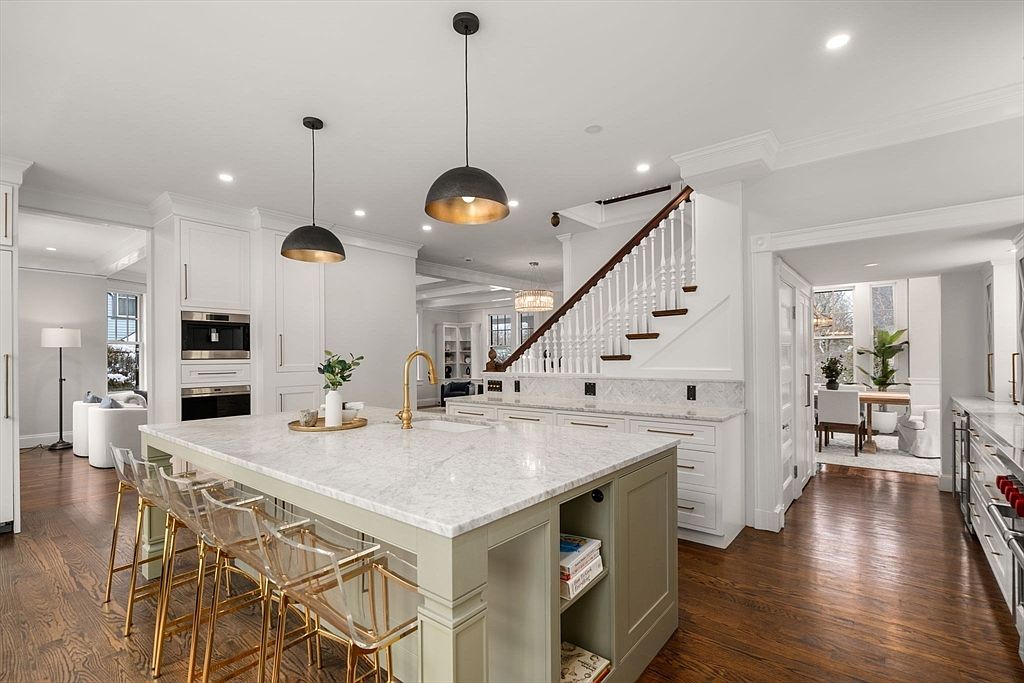 This stunning 5-bedroom, 3.5-bath home in Newton Centre epitomizes success and modern living, originally built in the late 19th century and recently renovated to perfection. Its striking Victorian architectural style, featuring a wraparound porch and custom interiors, offers an appealing blend of historical charm and contemporary amenities. The spacious layout includes a luxurious primary suite and an impressive kitchen, perfect for entertaining. Located near top-rated schools, shops, and major highways, this residence stands as a status symbol in a desirable community. With a listing price of $2,795,000, encompassing a generous plot and total square footage, the home is ideal for a future-oriented individual seeking elegance and comfort.