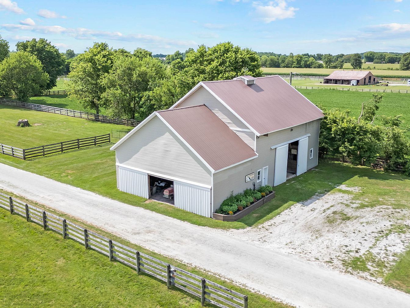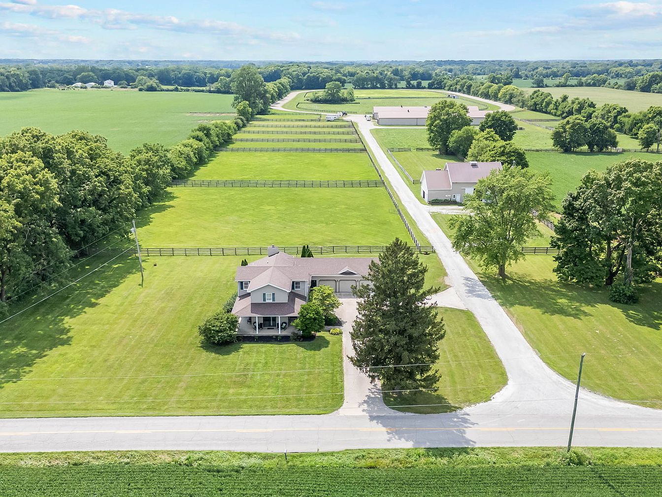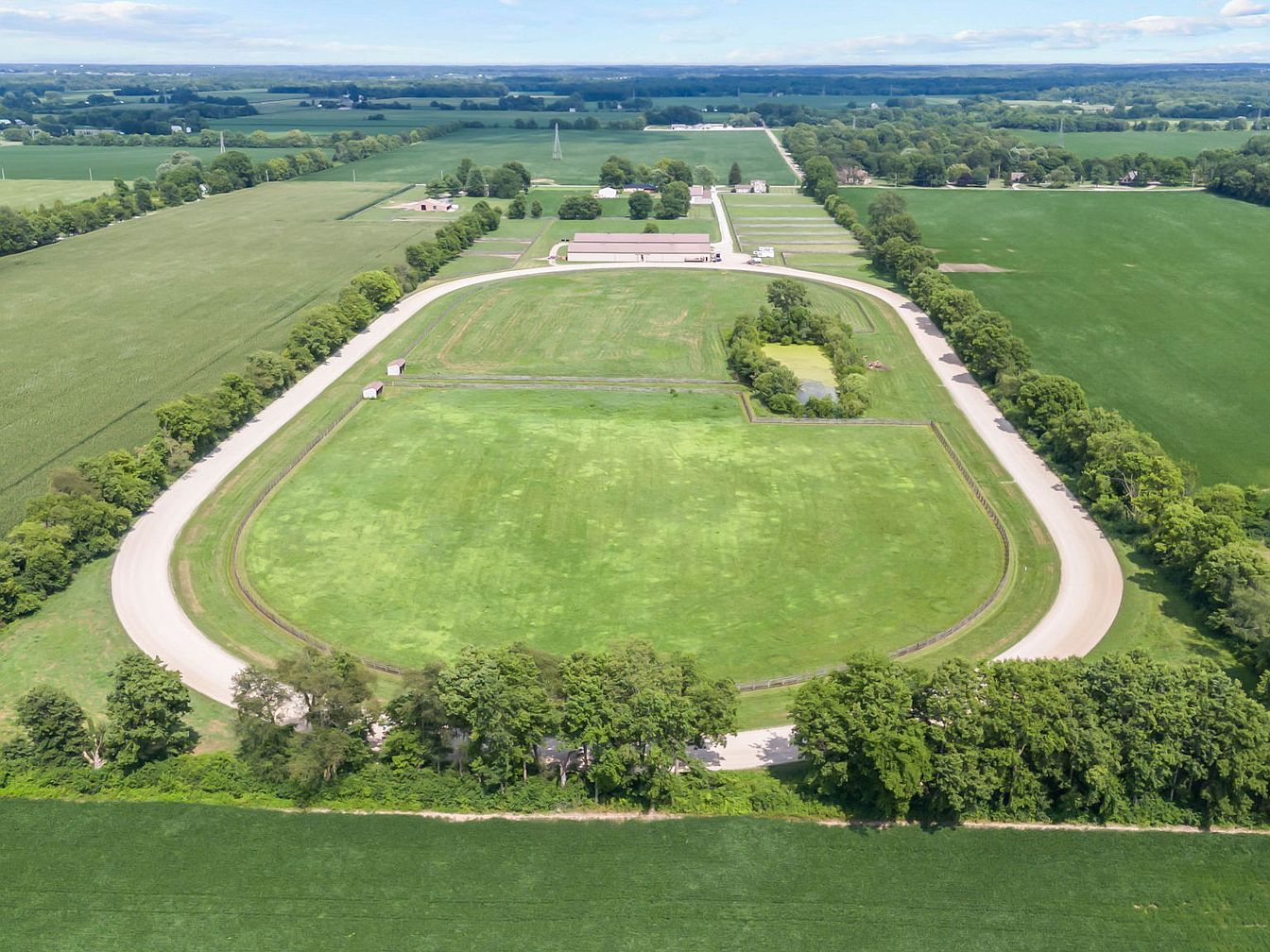 Nestled in Madison County, this unique equestrian training facility spans 35.5 acres and combines luxury with practicality, boasting a full-size race track and 12 fenced paddocks. Perfect for a success-oriented individual, the home features four spacious bedrooms, vaulted ceilings, and a chef’s kitchen, providing both comfort and style. Built in a charming, rustic style, the residence complements the lush surroundings. Recent renovations enhance its appeal, while proximity to I-69 adds convenience. Listing at $1,600,000, this 2,300 sq ft home, along with dual 40’x216′ stable barns providing 60 stalls, offers an exceptional lifestyle for equestrian professionals and enthusiasts alike.