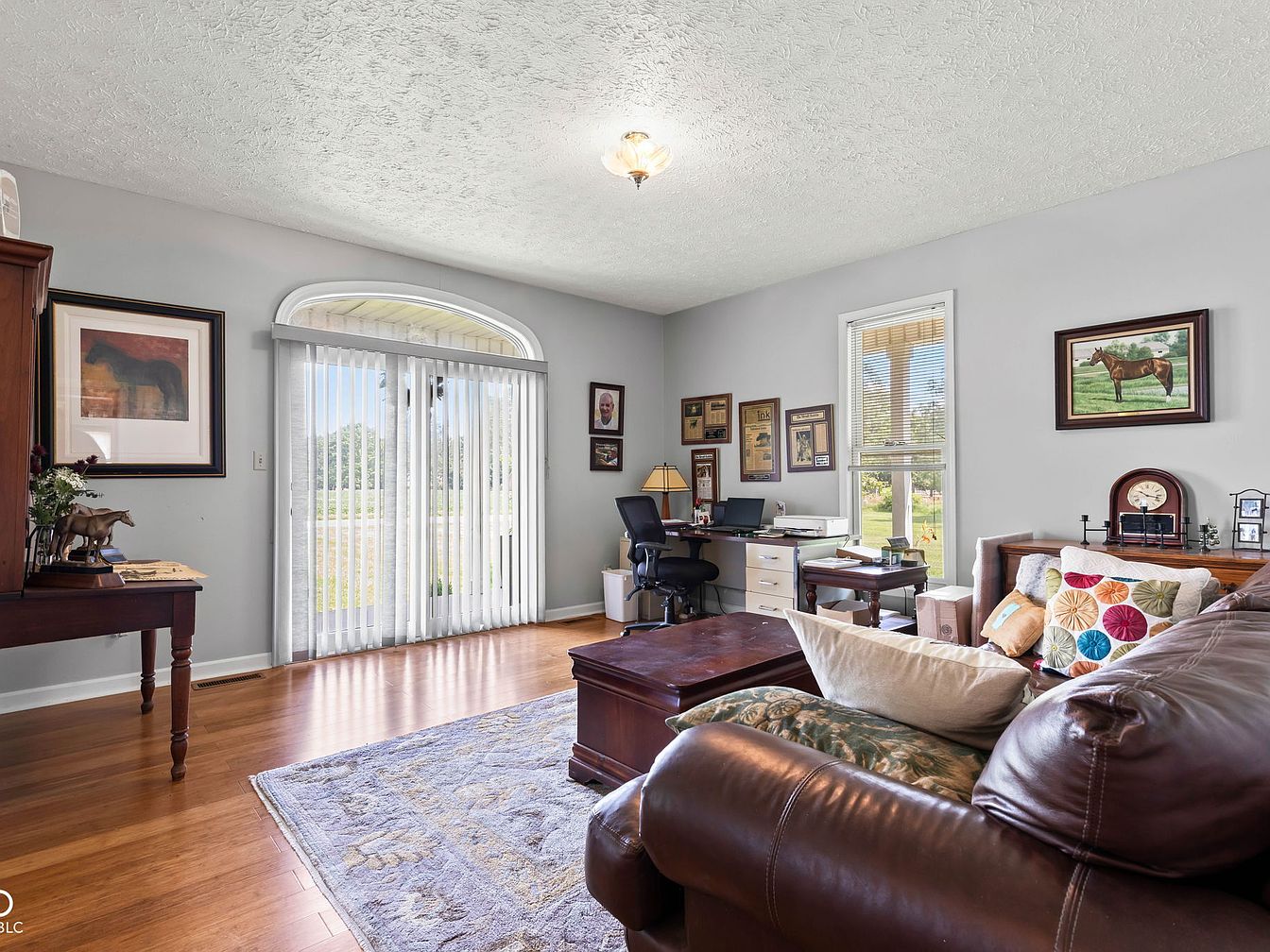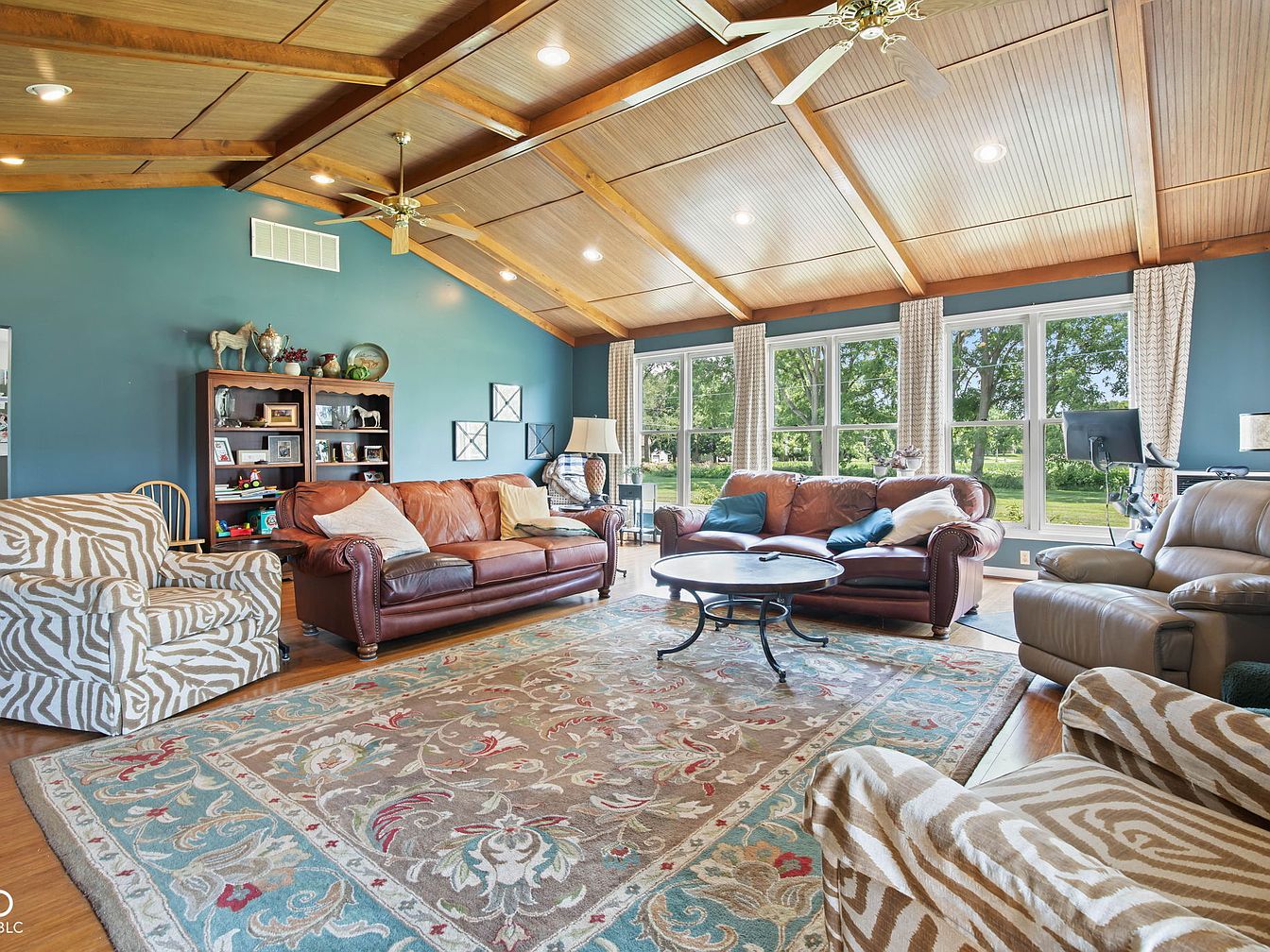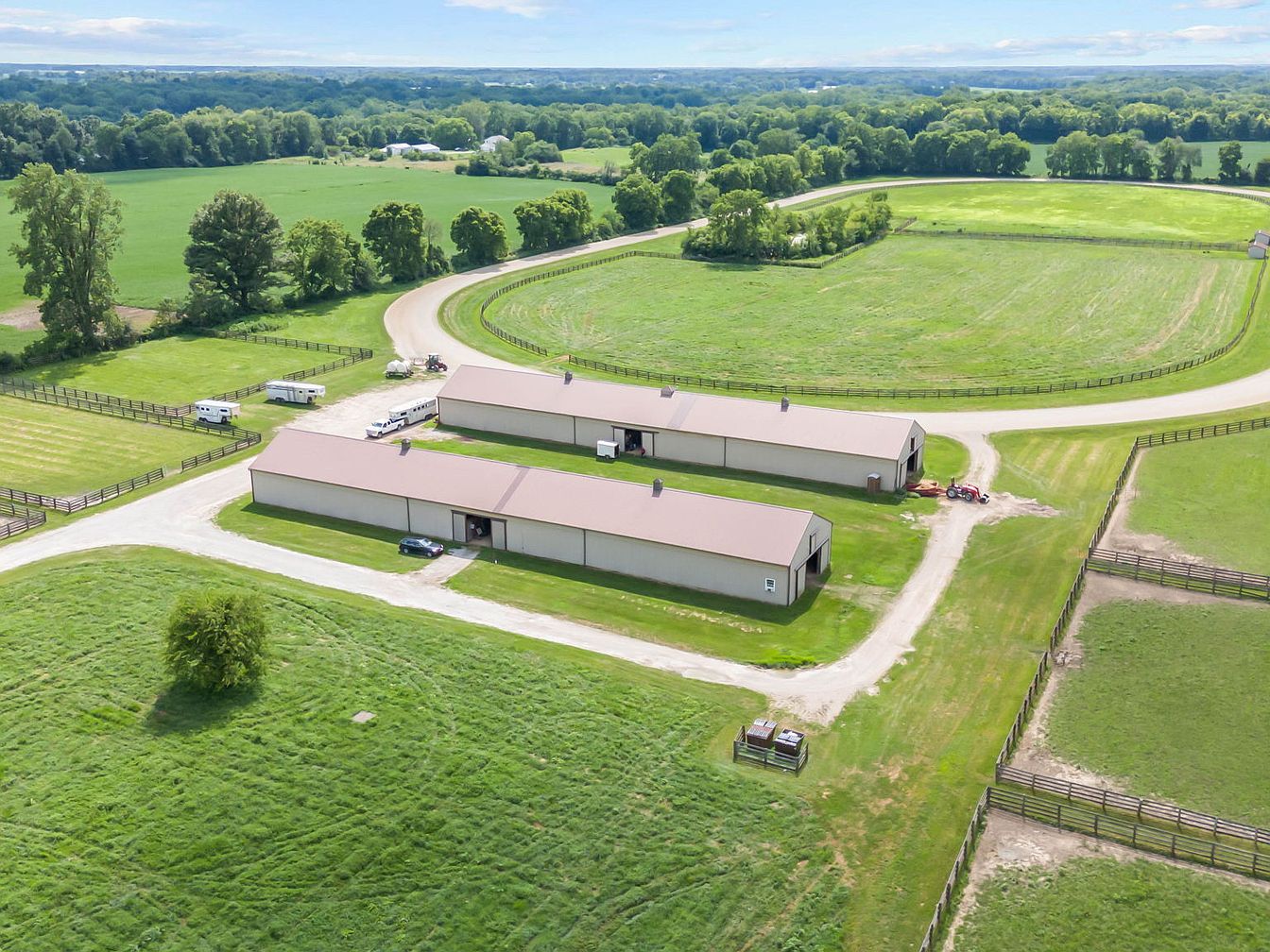 Nestled in Madison County, this unique equestrian training facility spans 35.5 acres and combines luxury with practicality, boasting a full-size race track and 12 fenced paddocks. Perfect for a success-oriented individual, the home features four spacious bedrooms, vaulted ceilings, and a chef’s kitchen, providing both comfort and style. Built in a charming, rustic style, the residence complements the lush surroundings. Recent renovations enhance its appeal, while proximity to I-69 adds convenience. Listing at $1,600,000, this 2,300 sq ft home, along with dual 40’x216′ stable barns providing 60 stalls, offers an exceptional lifestyle for equestrian professionals and enthusiasts alike.