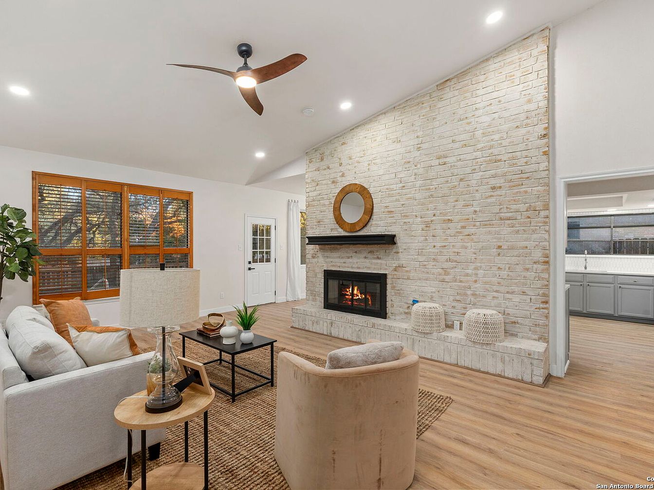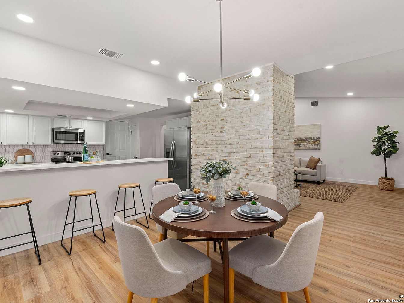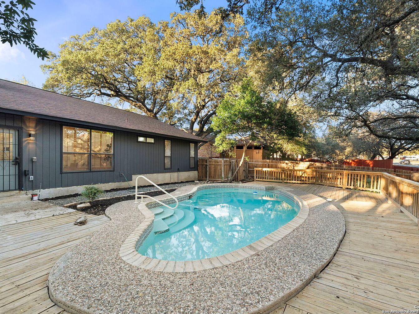 Nestled in San Antonio, this updated 3-bedroom, 2-bath brick home, built in a style that marries contemporary aesthetics with durability, is ideal for the success-driven individual. Priced at $399,900, it boasts a spacious 1,600 square feet on a generous plot, perfect for family needs or future investments, thanks to the absence of HOA restrictions. The architectural appeal is highlighted by a light-toned brick façade and modern interior finishes, including quartz countertops and designer tiles. Recent renovations emphasize contemporary living, while the outdoor pool and shaded backyard provide an inviting space for relaxation and entertainment. Its prime location near shopping, dining, and major roadways enhances its desirability for a future-oriented lifestyle.