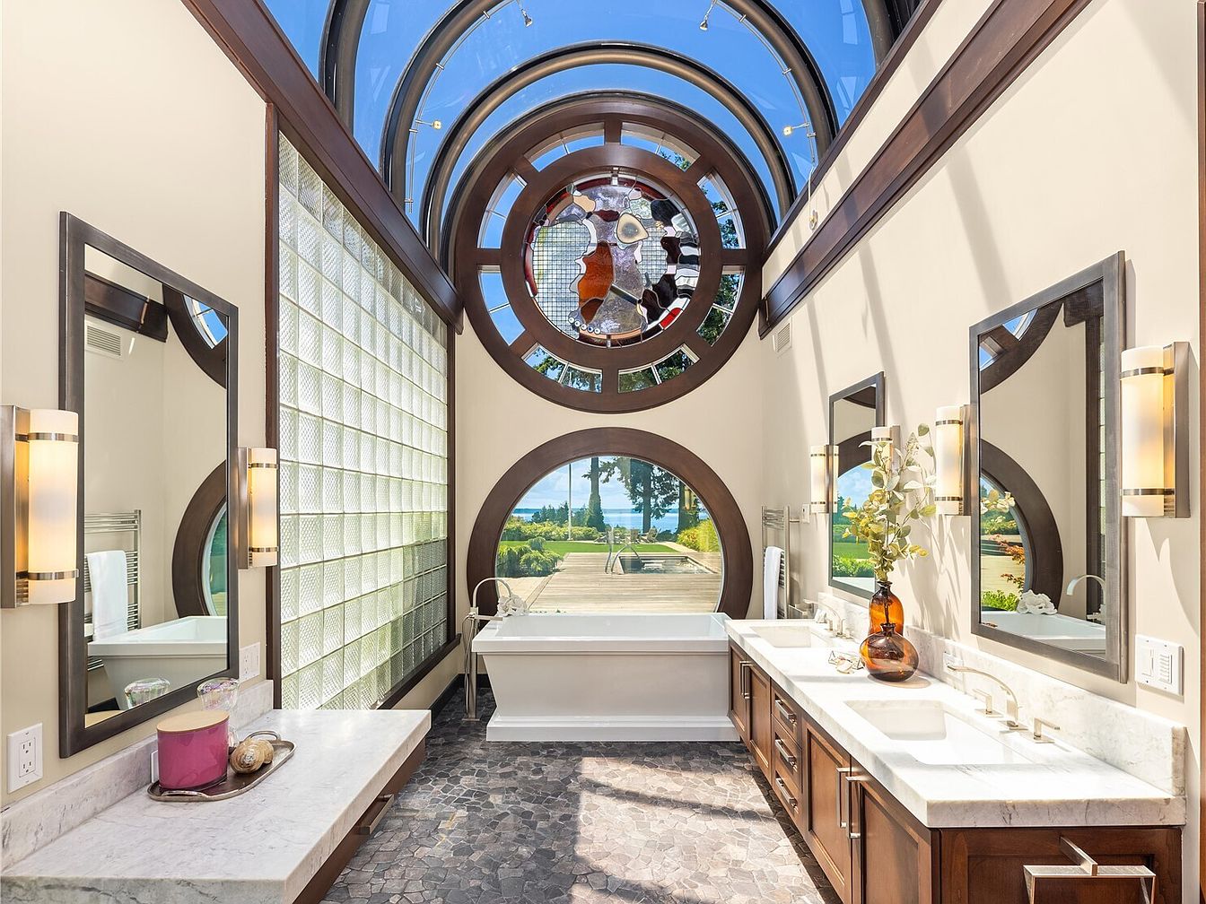 This Mukilteo, WA estate is a status symbol that blends modern luxury with architectural brilliance, showcasing walls of glass, soaring domed ceilings, and custom northwest glass art for uninterrupted panoramic views of Puget Sound and the Olympic Mountains. Designed for the ambitious, future-focused individual, the gated property emphasizes both privacy and grandeur, featuring a state-of-the-art kitchen with premium Wolf and Sub-Zero appliances, multiple walk-in closets, spa-inspired bathrooms with advanced privacy glass, and spaces tailored for entertaining including a huge patio, outdoor kitchen, and swim spa. With a six-car garage, home theater, wine room, and meticulous gardens, this $6,000,000 residence on an expansive plot is a rare, impressive opportunity, reflecting sophistication and world-class comfort.